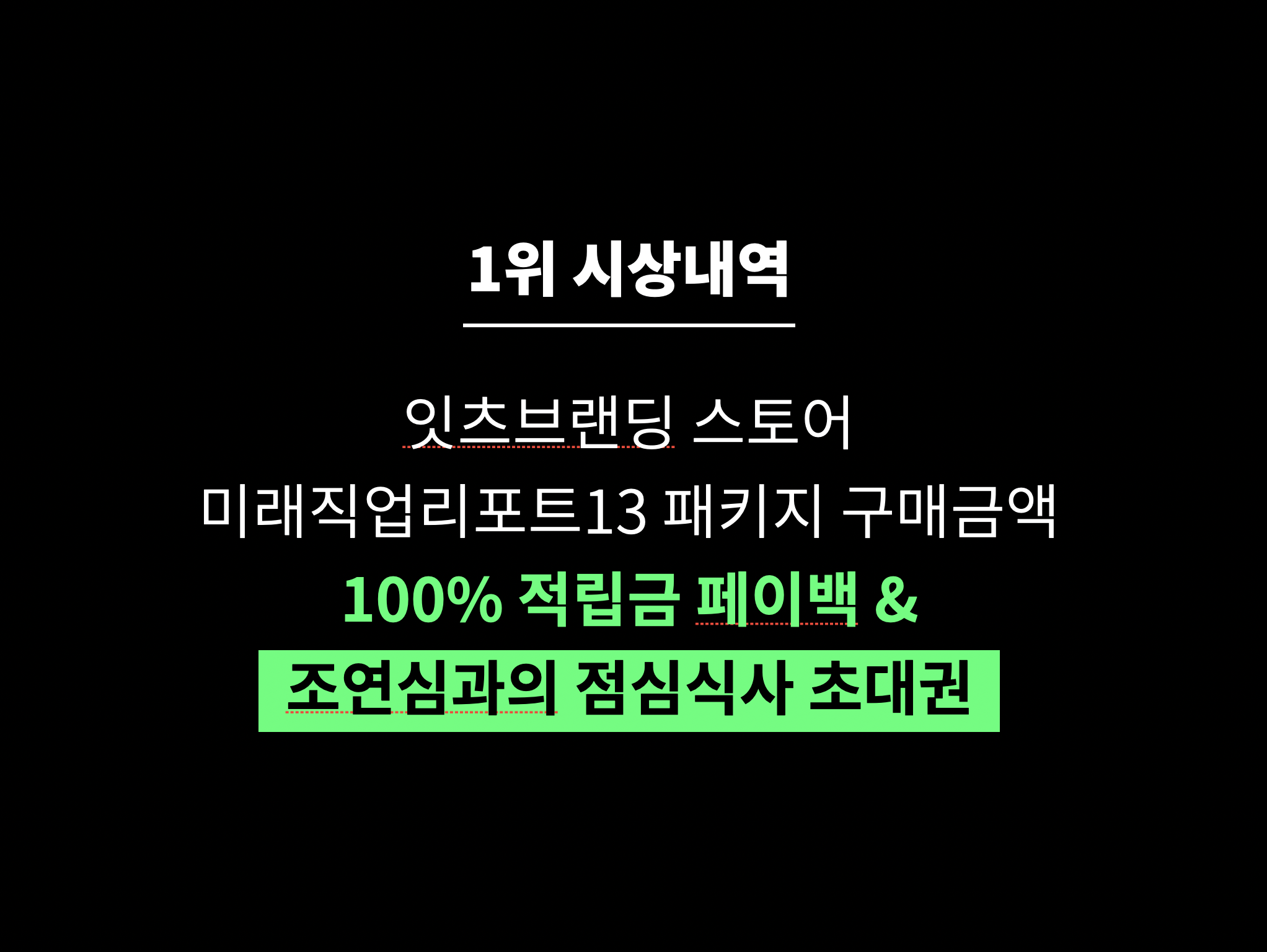 1위는 잇츠브랜딩 결제금액 100% 적립금 페이백 및 조연심과의식사 초대권