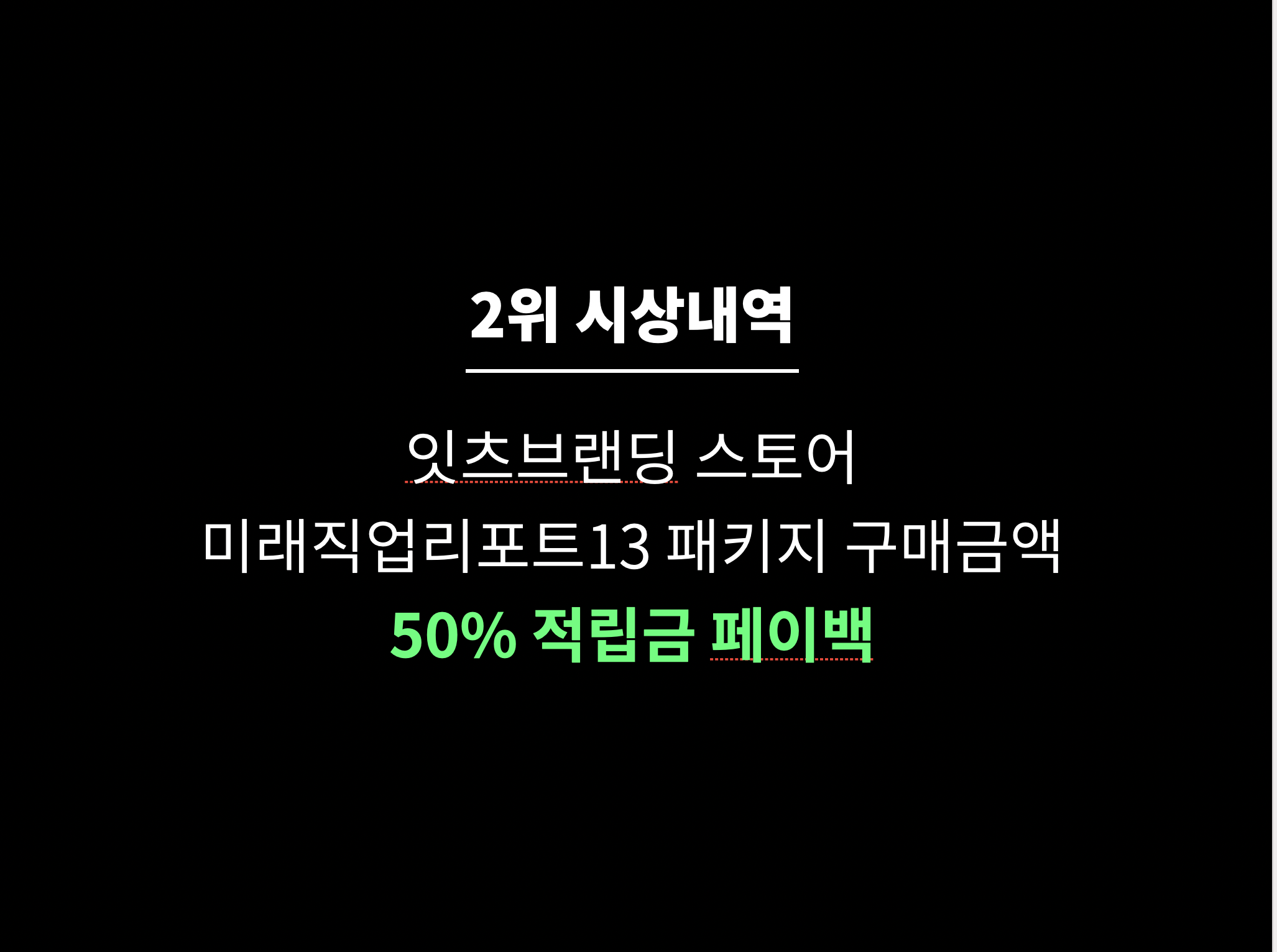2위는 잇츠브랜딩 결제금액 50% 적립금 패이백