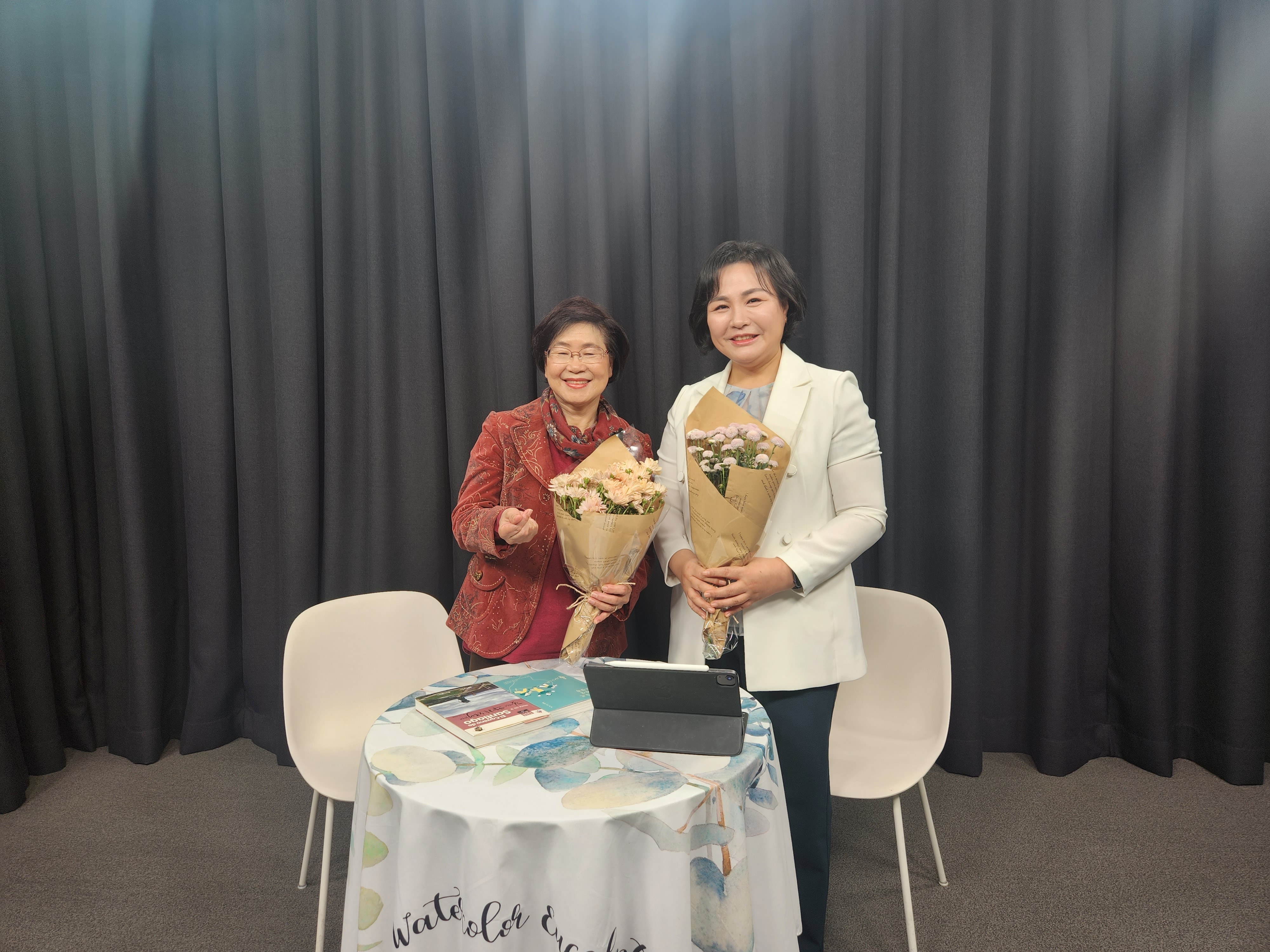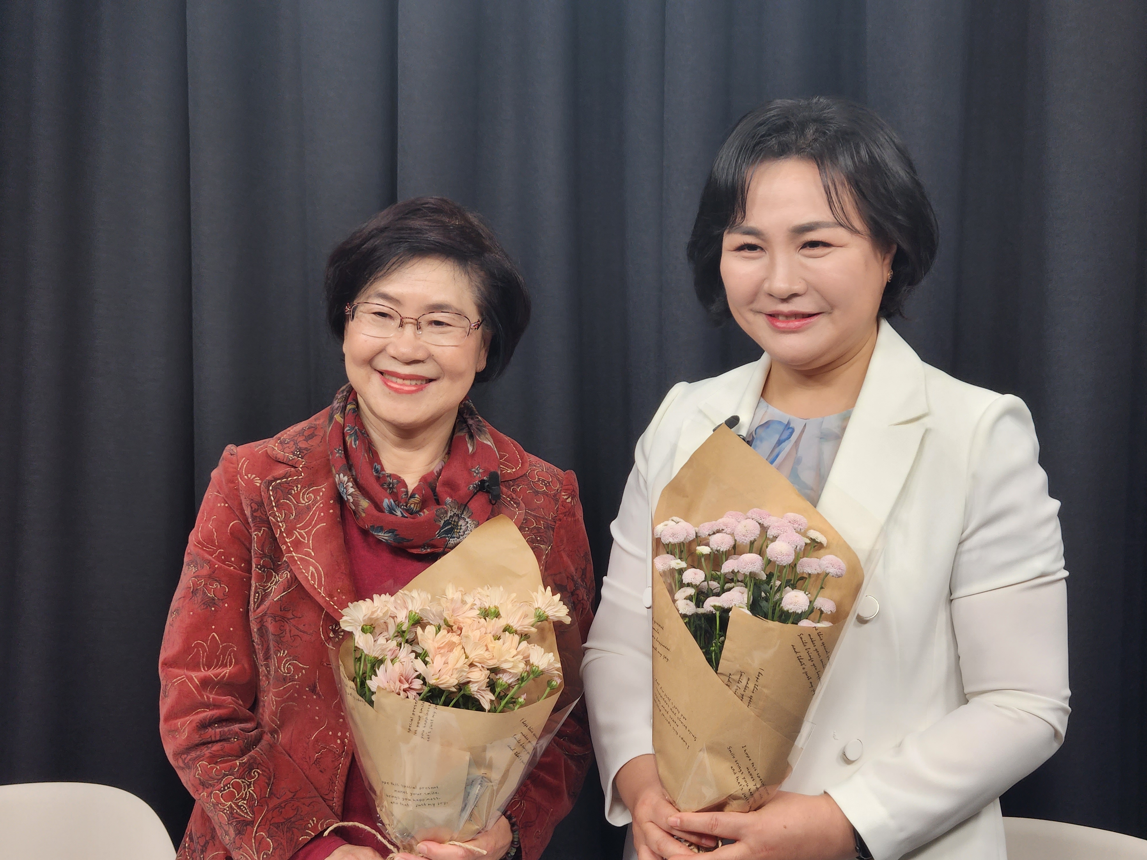 가정경제 재무장관 오미옥 대표가 꽃다발을 선물해줘서