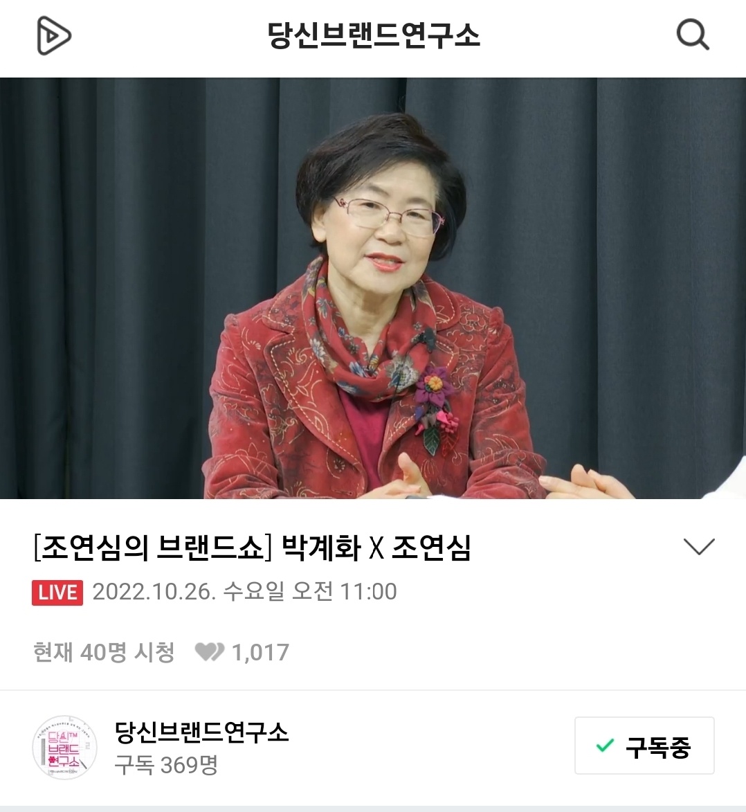 #당신브랜드연구소 #조연심의브랜드쇼 #게스트 #박계화 선생님 편