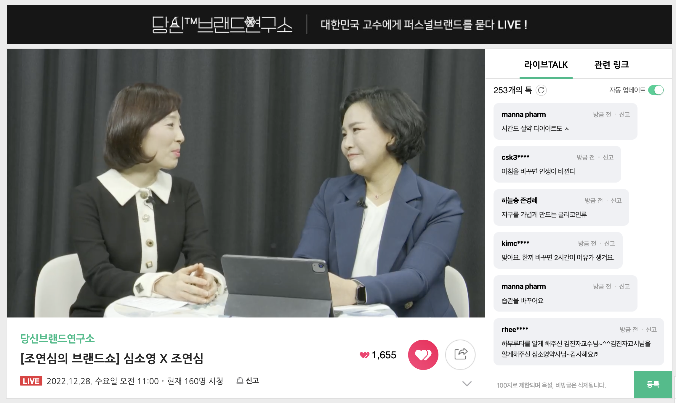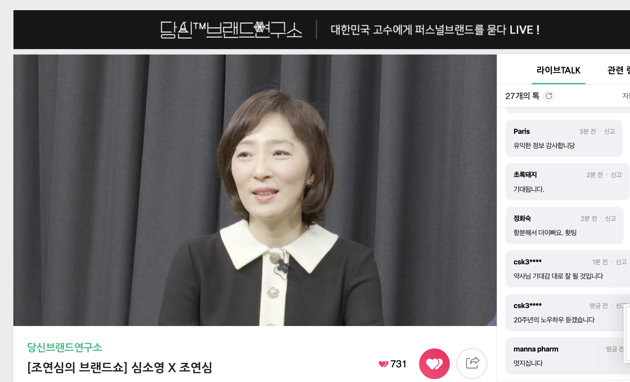 2022년 네이버나우 x 오디오클립 동시 라이브로 #당신브랜드연구소 #조연심의브랜드쇼 성공적으로 마무리했네요.