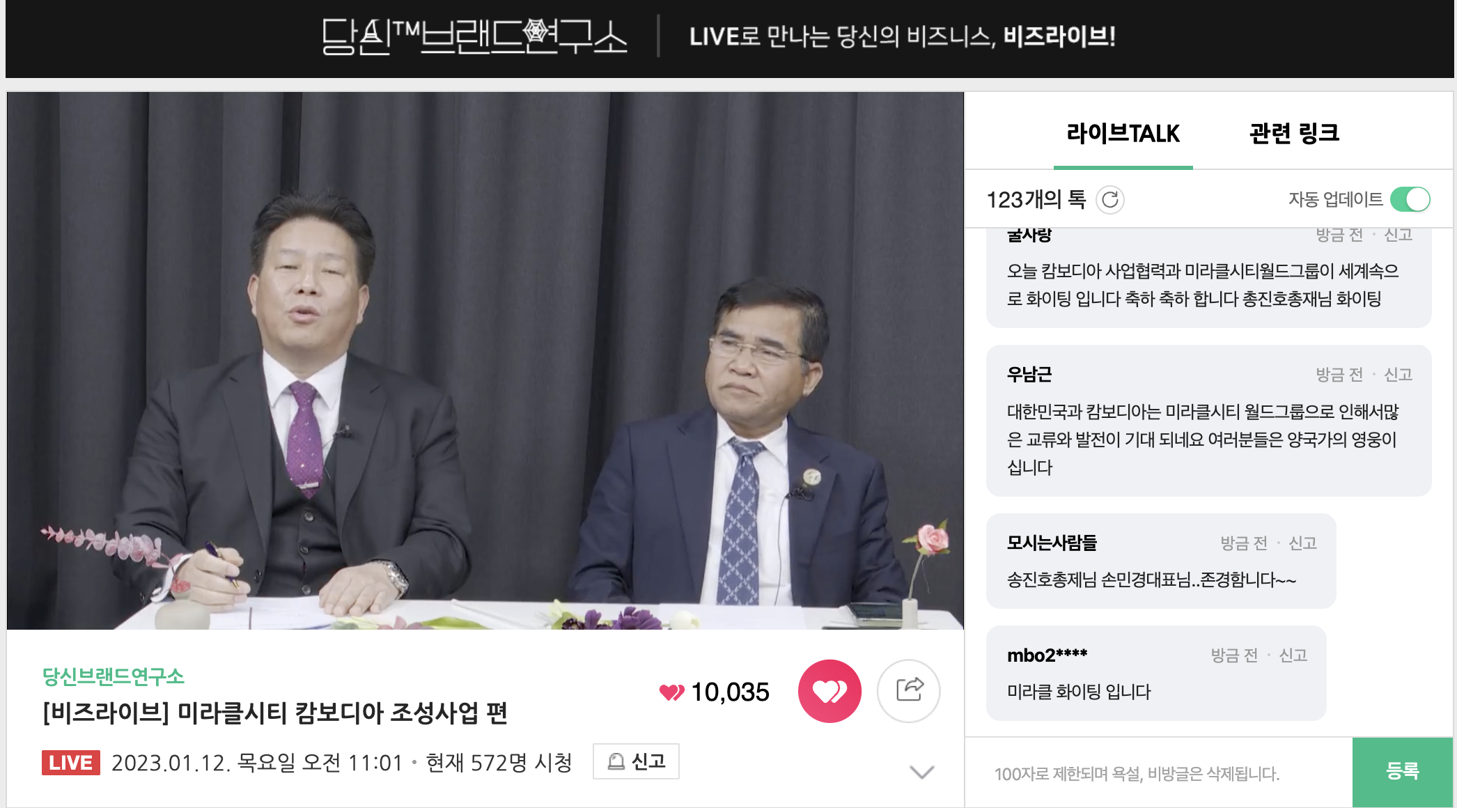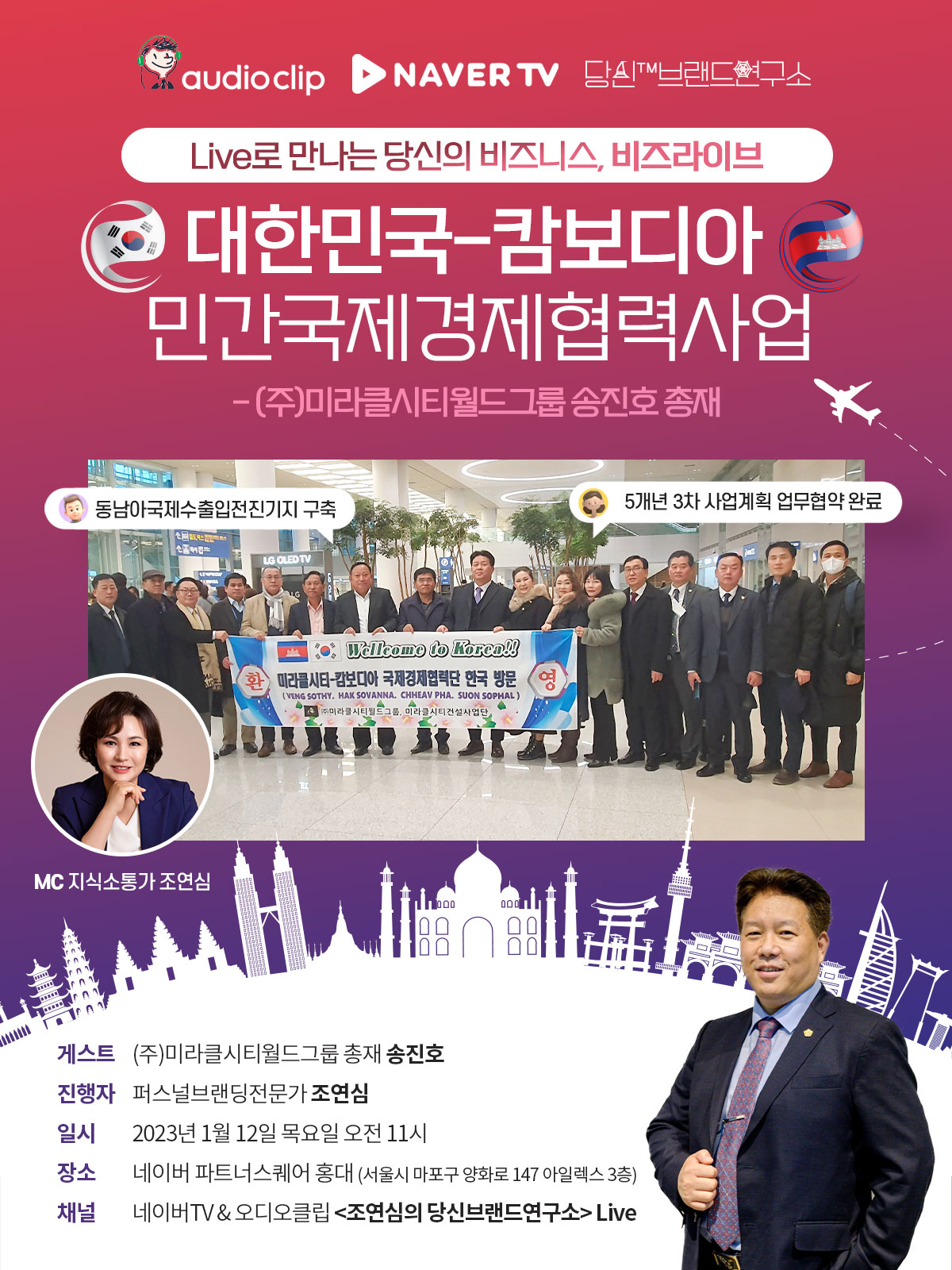 네이버나우 x 오디오클립 [당신브랜드연구소] -조연심의 비즈라이브 <대한민국- 캄보디아 민간국제경제협력사업> 미라클시티월드그룹 송진호 총재 편