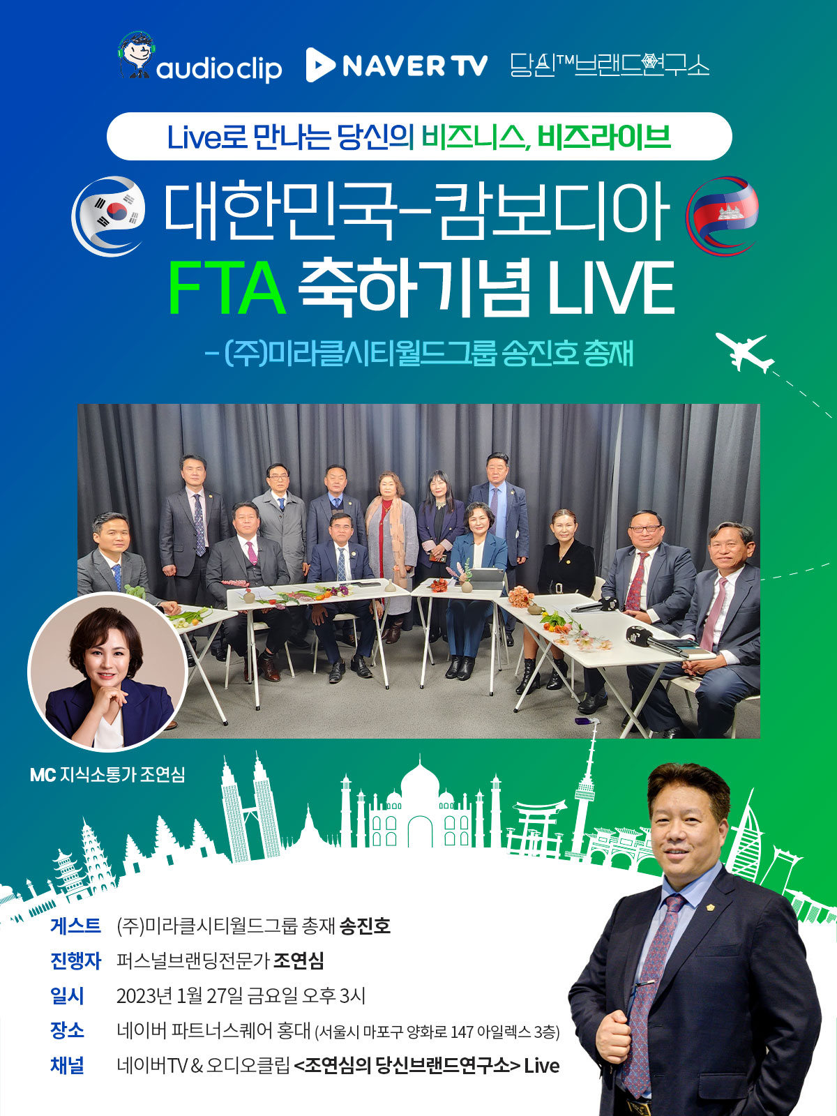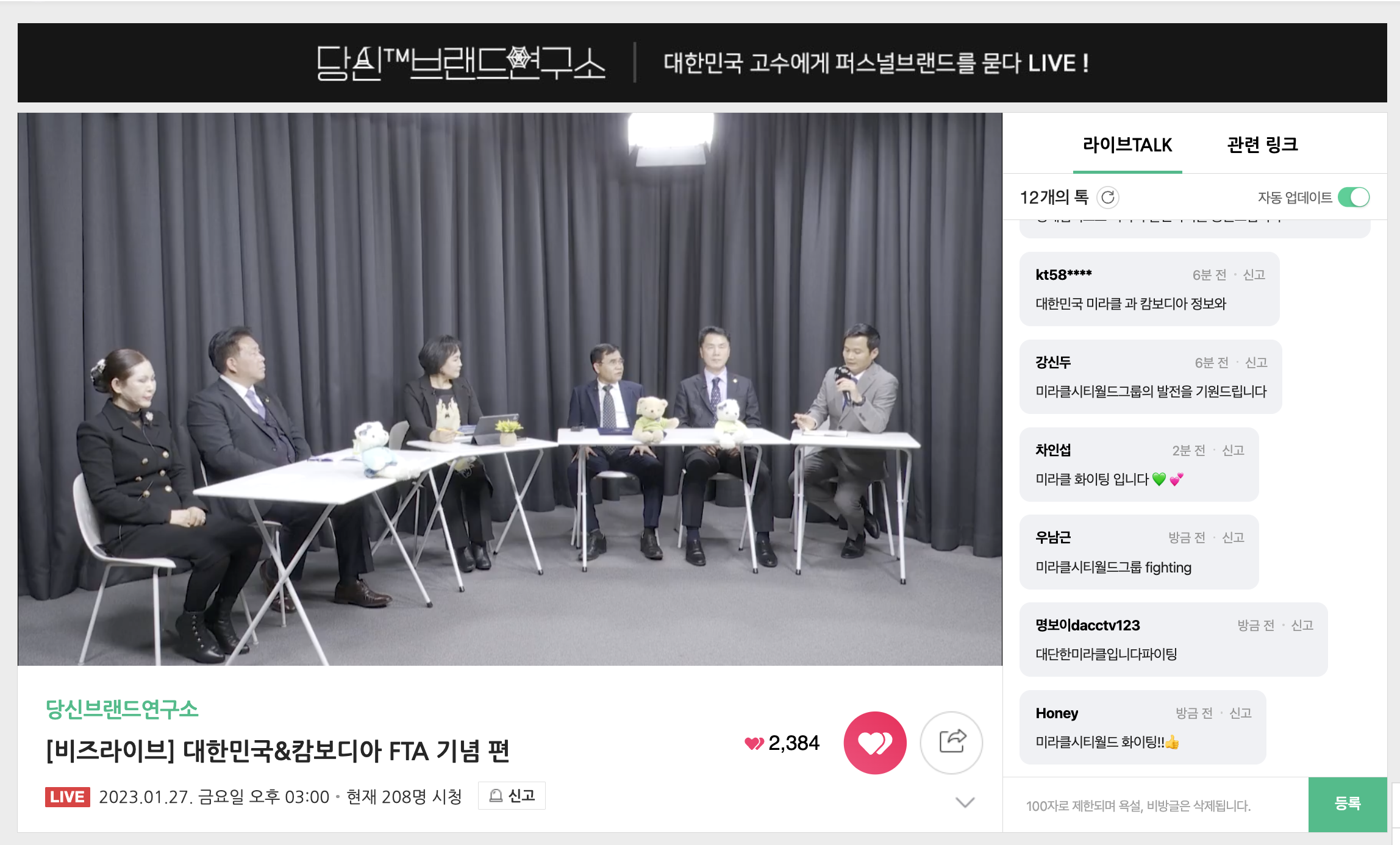 [네이버나우 당신브랜드연구소 조연심의 비즈라이브] 대힌민국 - 캄보디아 FTA 공식 승인 축하 기념 라이브 방송 / 미라클시티월드그룹