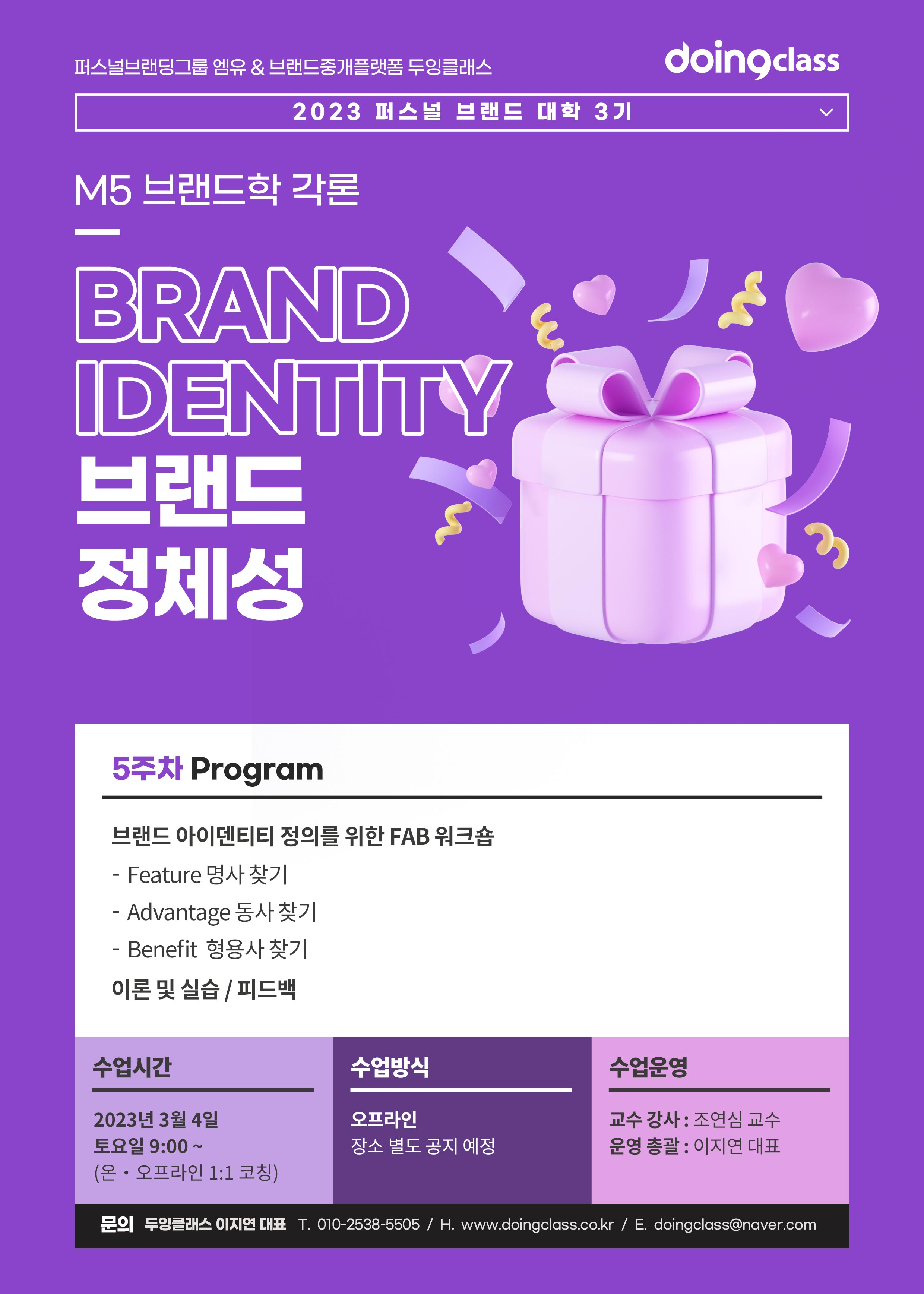 다음 주에는 #브랜드학각론 #브랜드정체성 #fab워크숍