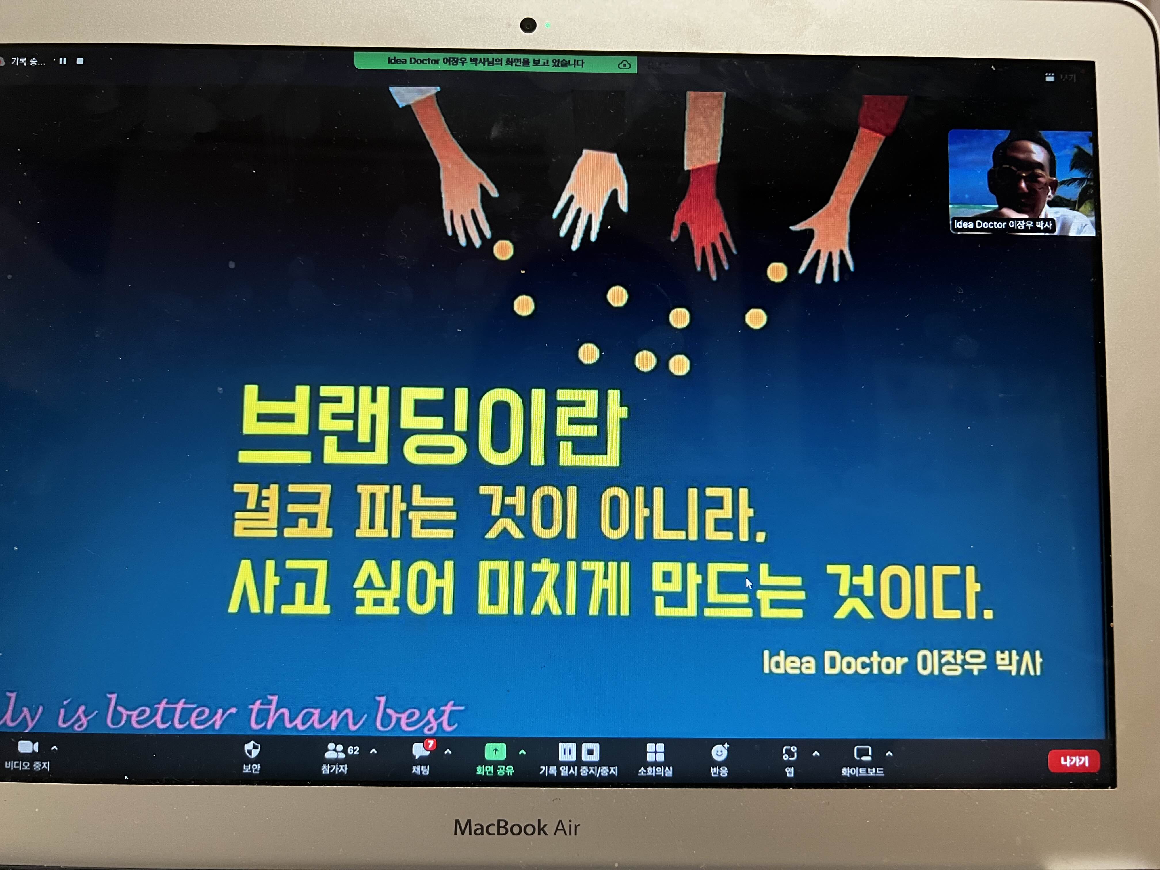 브랜드에 대한 시각과 견해를 넓게 열어주시고 뇌를 말랑말랑하게 해 주신 이장우 박사님의 브랜드 강의는 늦은 밤에도 정신이 번쩍 날만큼 강력한 에너지로 가득했답니다. 역시 첫 강사님으로 딱이라는 것을 직접 증명해주셨답니다.