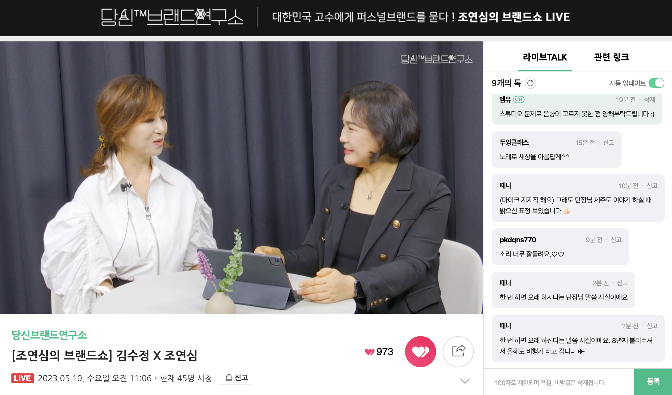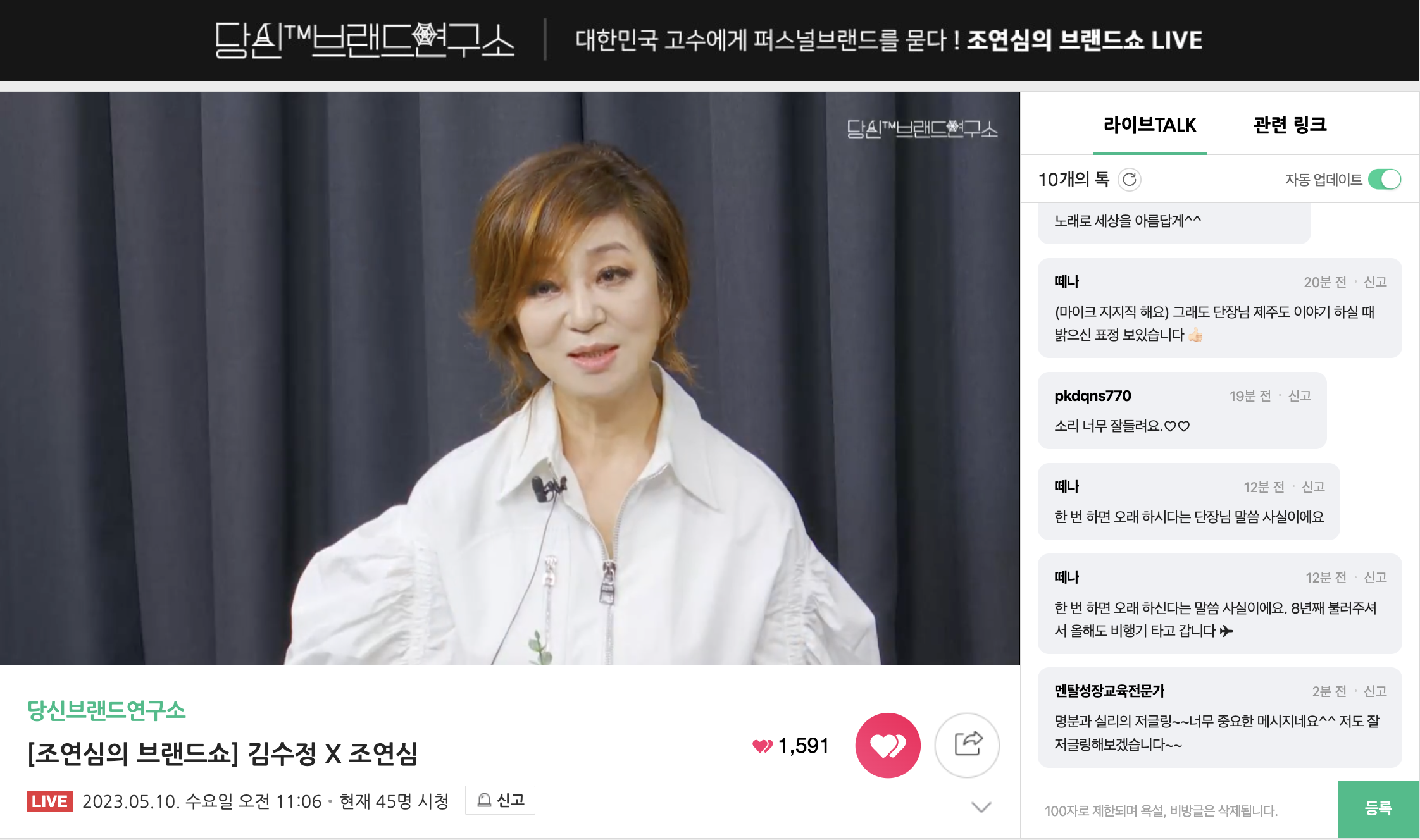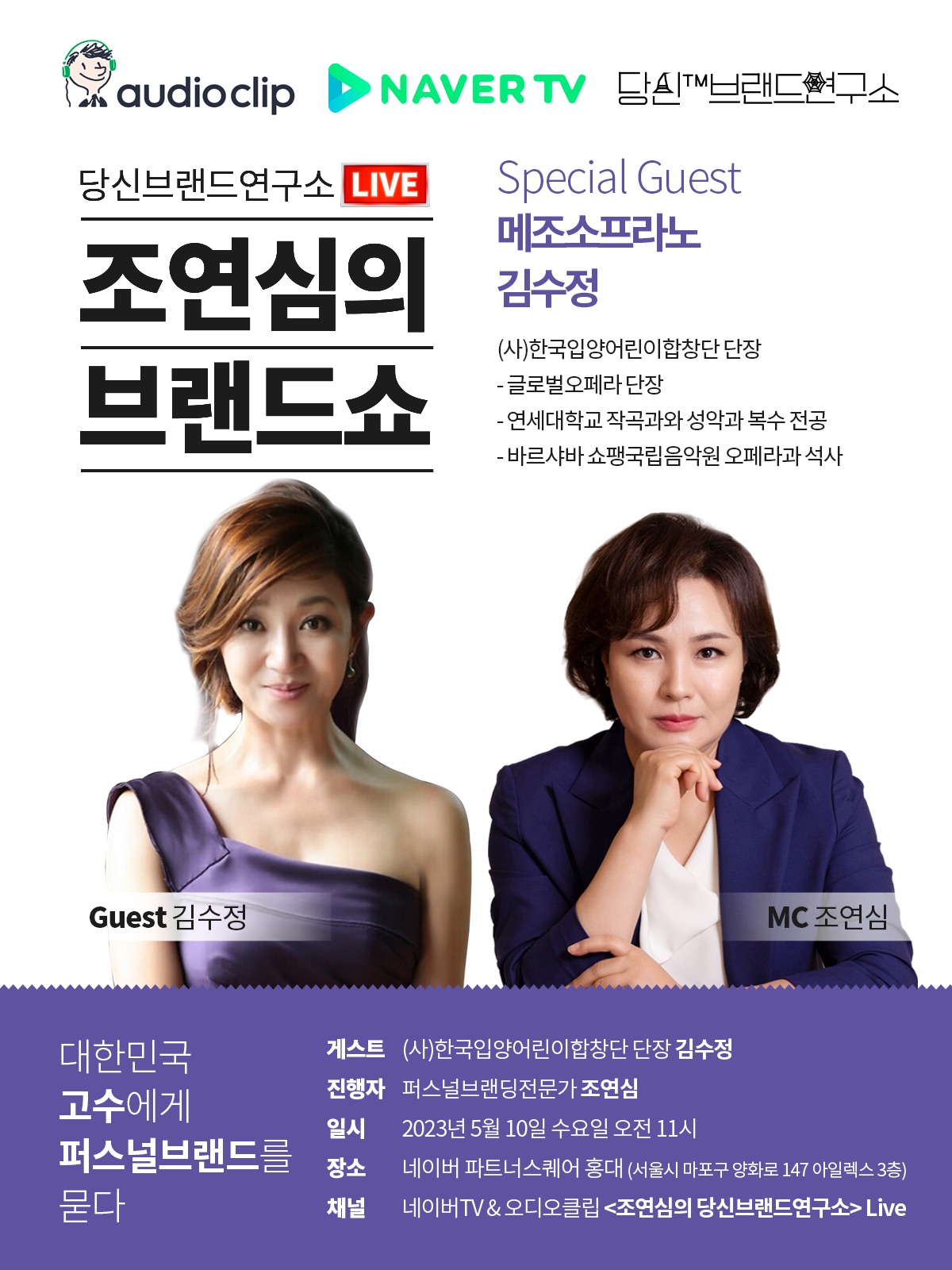 퍼스널브랜딩토크쇼 <조연심의브랜드쇼> 네이버TVx오디오클립 라이브 당신브랜드연구소 - 한국입양어린이합창단 단장 & 메조소프라노 김수정 편 후기