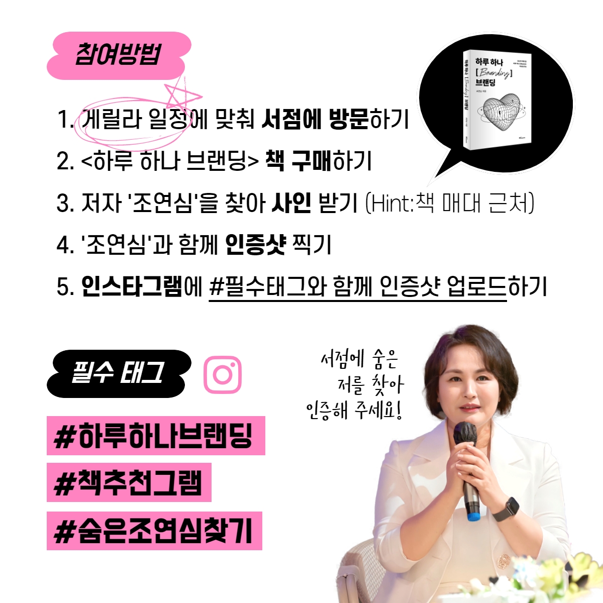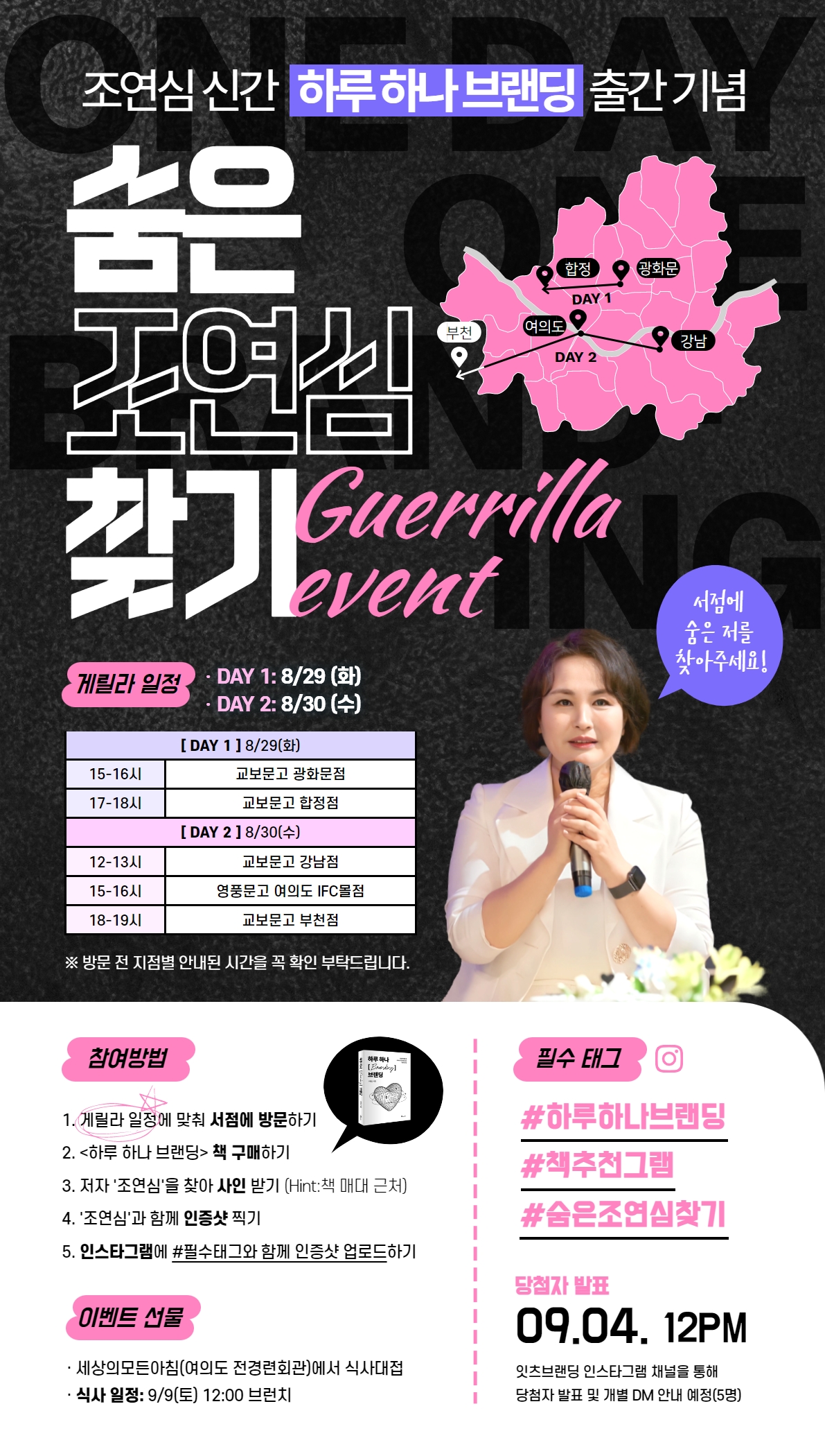 Guerrilla event 조연심 신간 <하루 하나 브랜딩> 출간 기념 숨은 조연심 찾기 게릴라 이벤트! 서점...