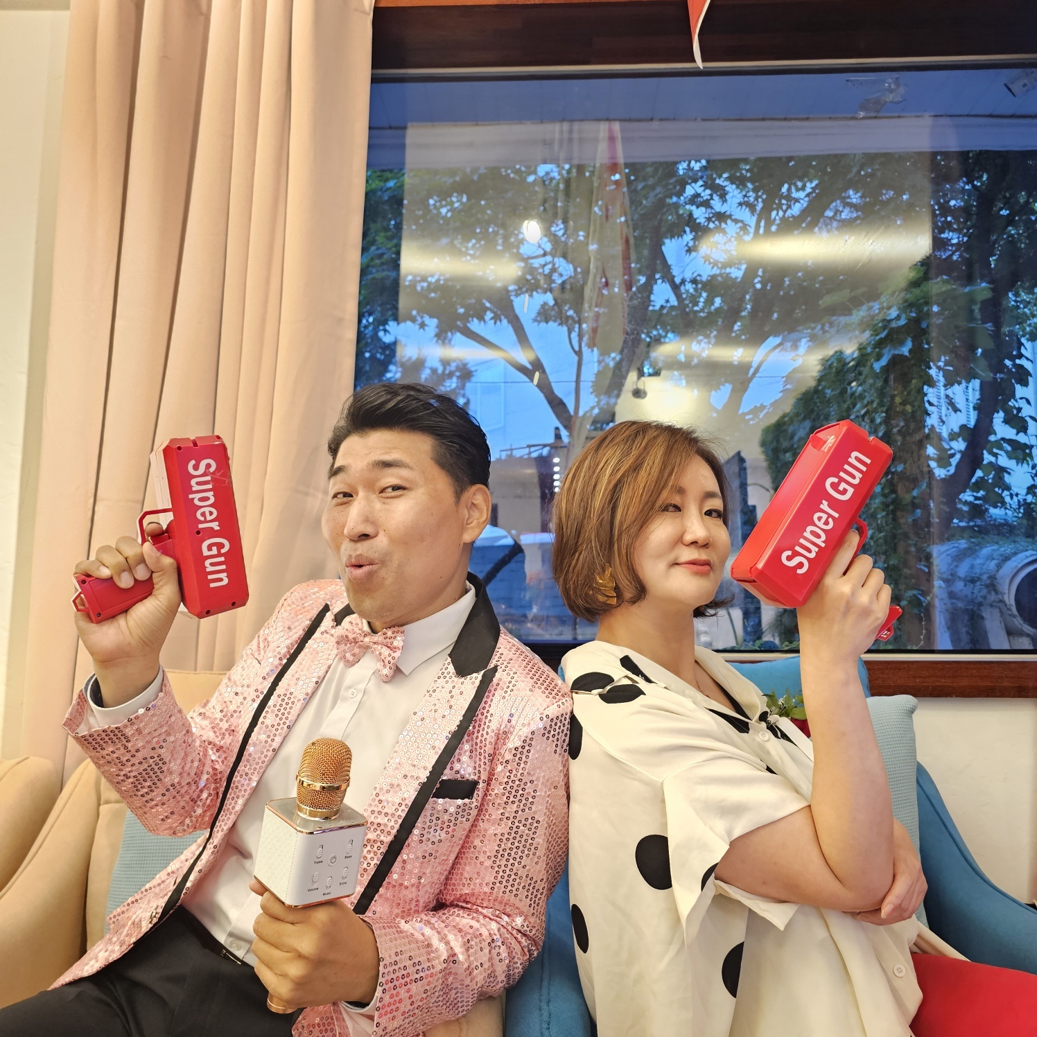 💟가수 #감동근 #너는나의에너지 축하공연으로 파티 분위기는 절정에 다달았어요. 반짝이의상이 어쩜 그리 질 어울리던지.. 이지연 대표와의 환상호흡은 언제봐도 즐겁습니다.
