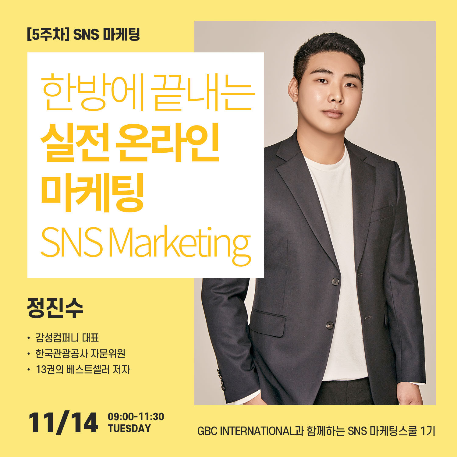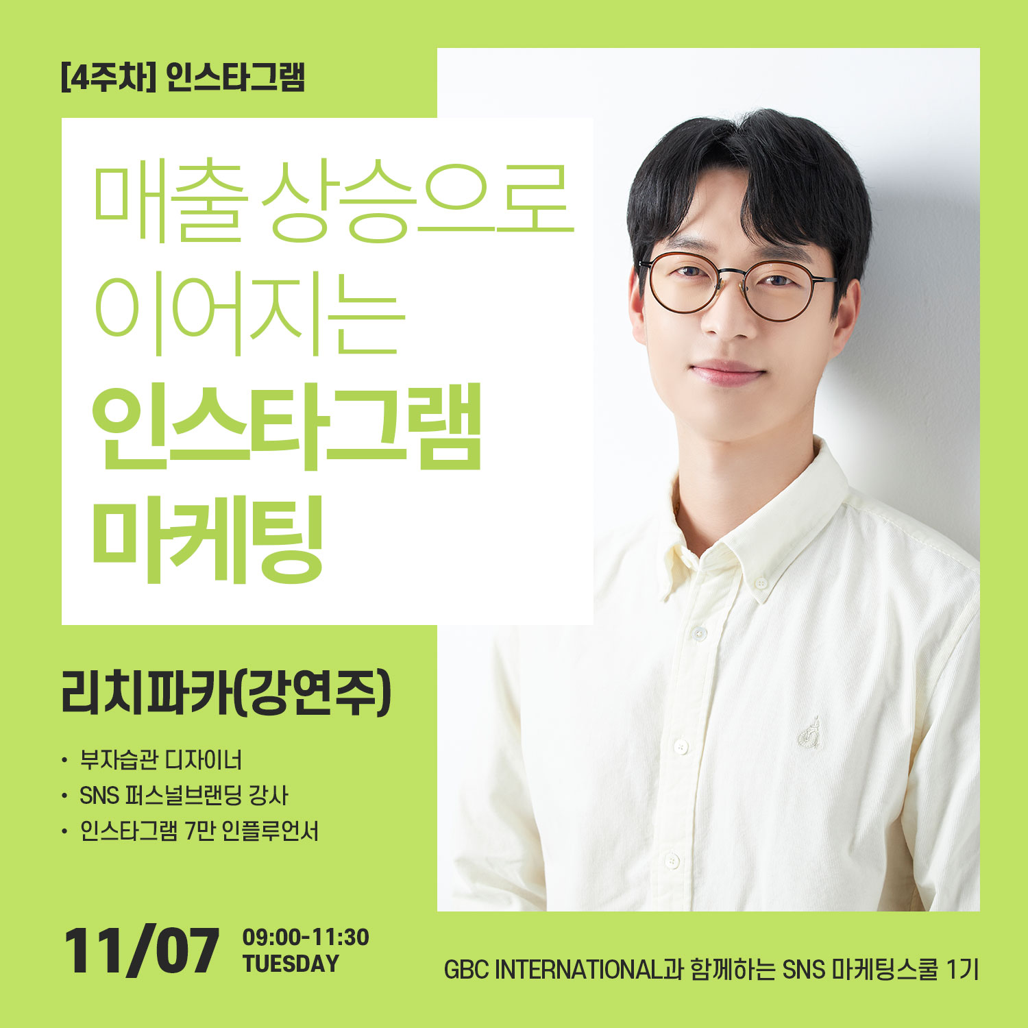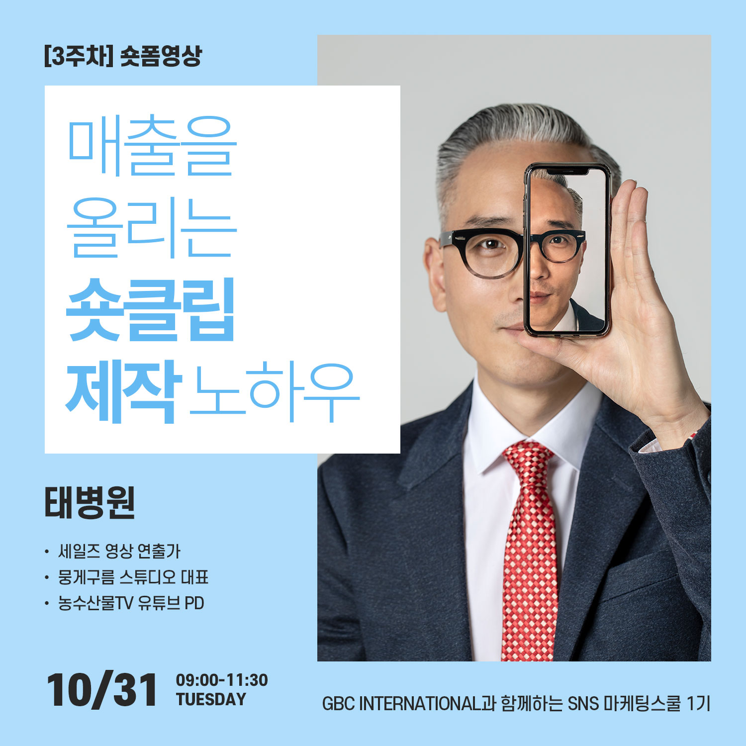 [GBC SNS 마케팅 스쿨 1기] 비즈니스상생플랫폼 GBC 인터내셔널 회원 대상 소셜미디어마케터 교육 과정 "당신의 SNS 역량강화을 위한 올인원 교육" 📍 일시: 2023년 10월 17일 - 11월 21일 매주 화요일 오