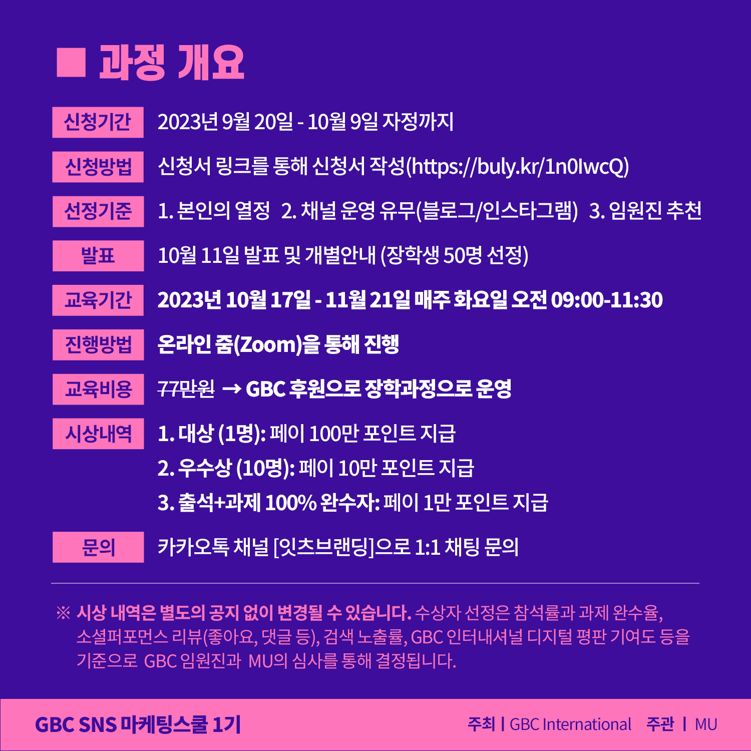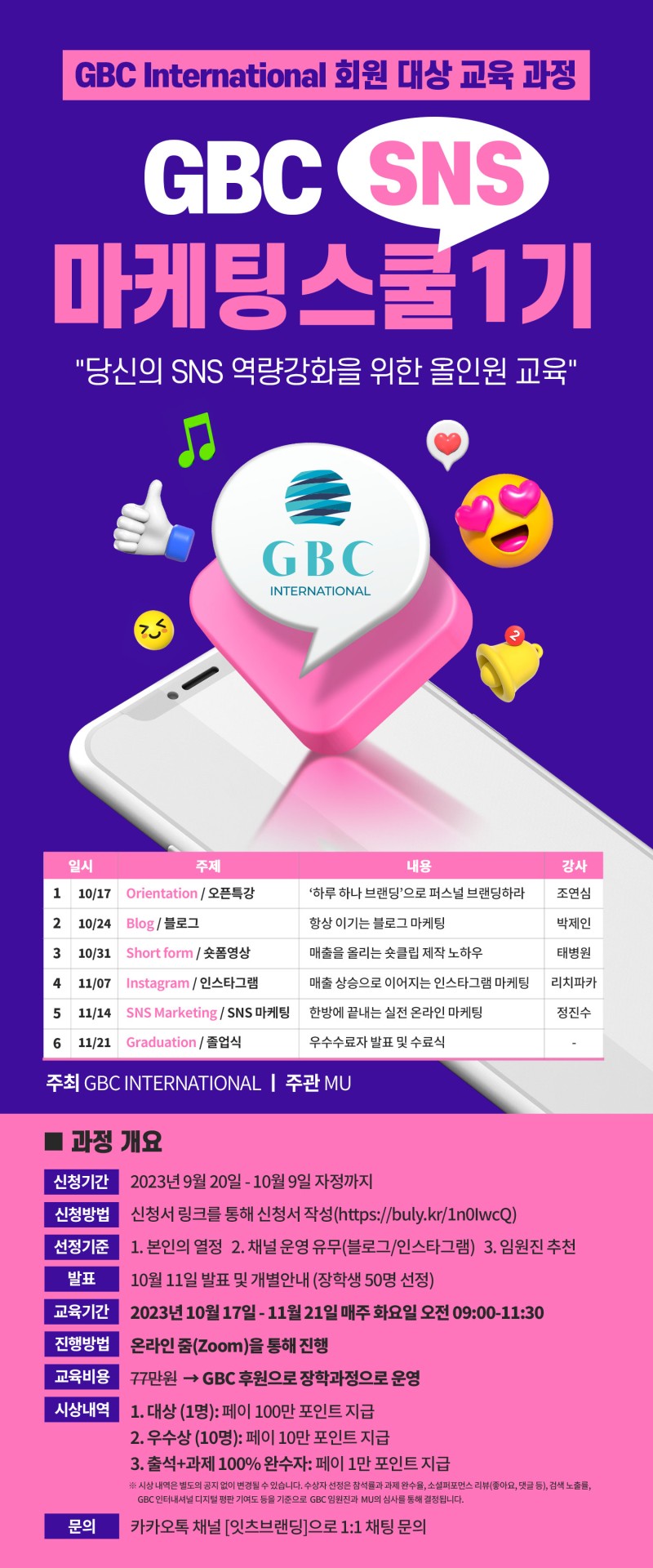 GBC SNS 마케팅 스쿨 1기 장학생 신청하기