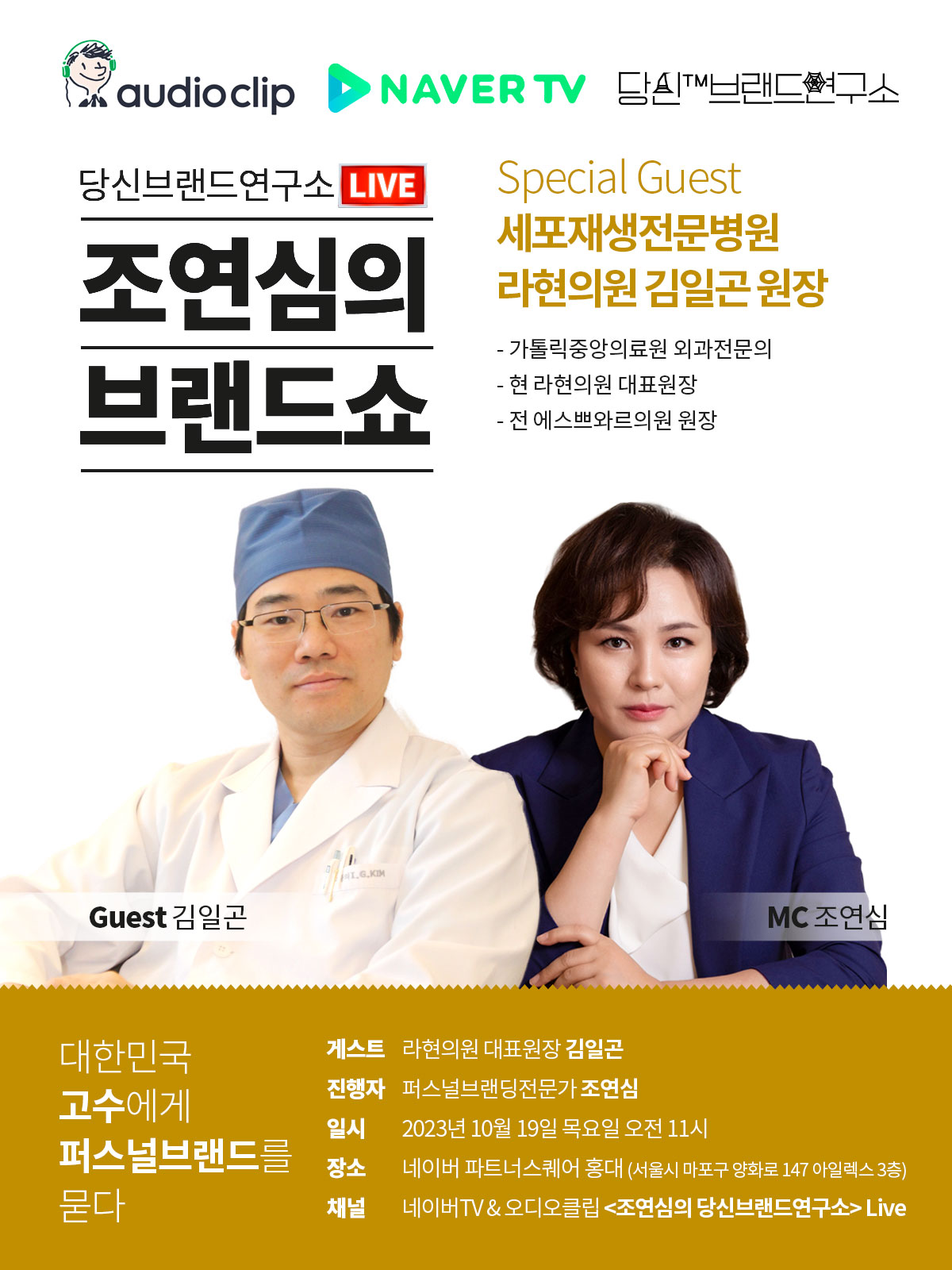 오늘의 게스트는 #청담동 대표 성형외과 #청담피부과 #라현의원 #세포제생전문병원 #김일곤 원장님과 함께 했어요.