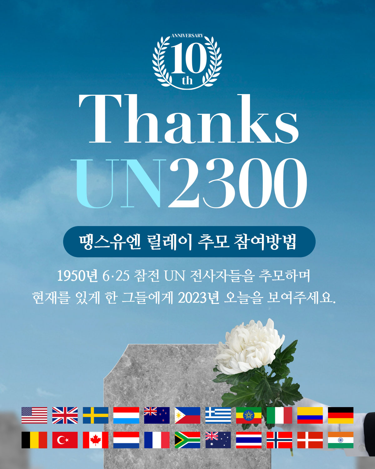 1950년 6・25 참전 UN 전사자들을 추모하며 현재를 있게 한 그들에게 2023년 오늘을 보여주세요.