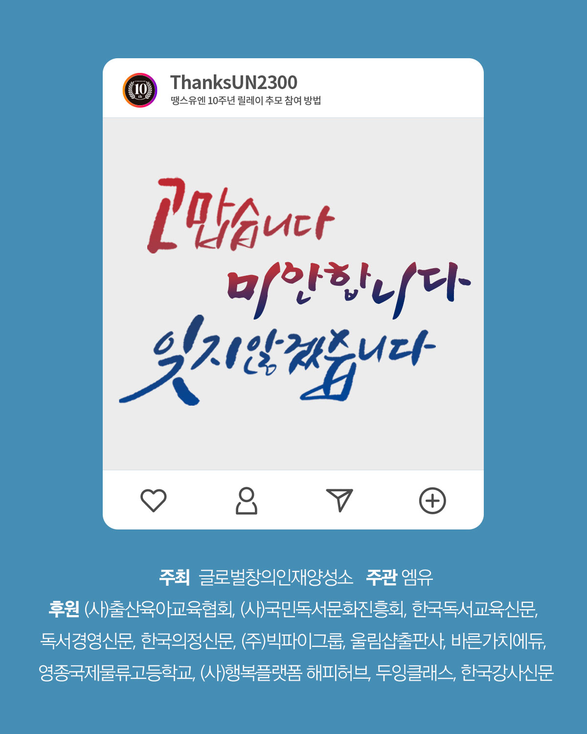 2. 인스타그램에 '오늘' 사진과 함께 #ThanksUN2300 #땡스유엔 해시태그하여 업로드하기