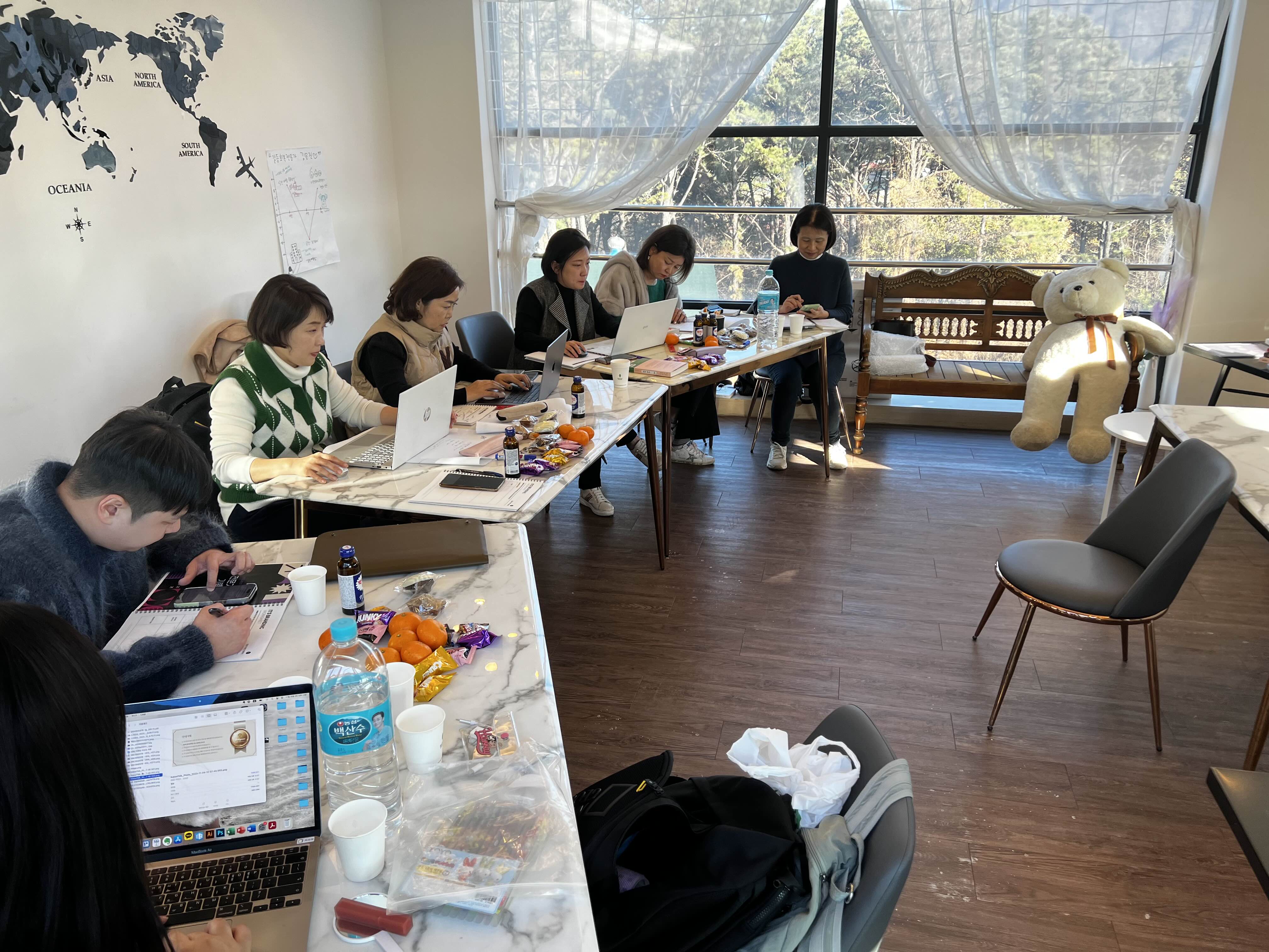 휴식 시간에도 온전히 자신의 프로젝트 기획에 열정적인 사람들...
