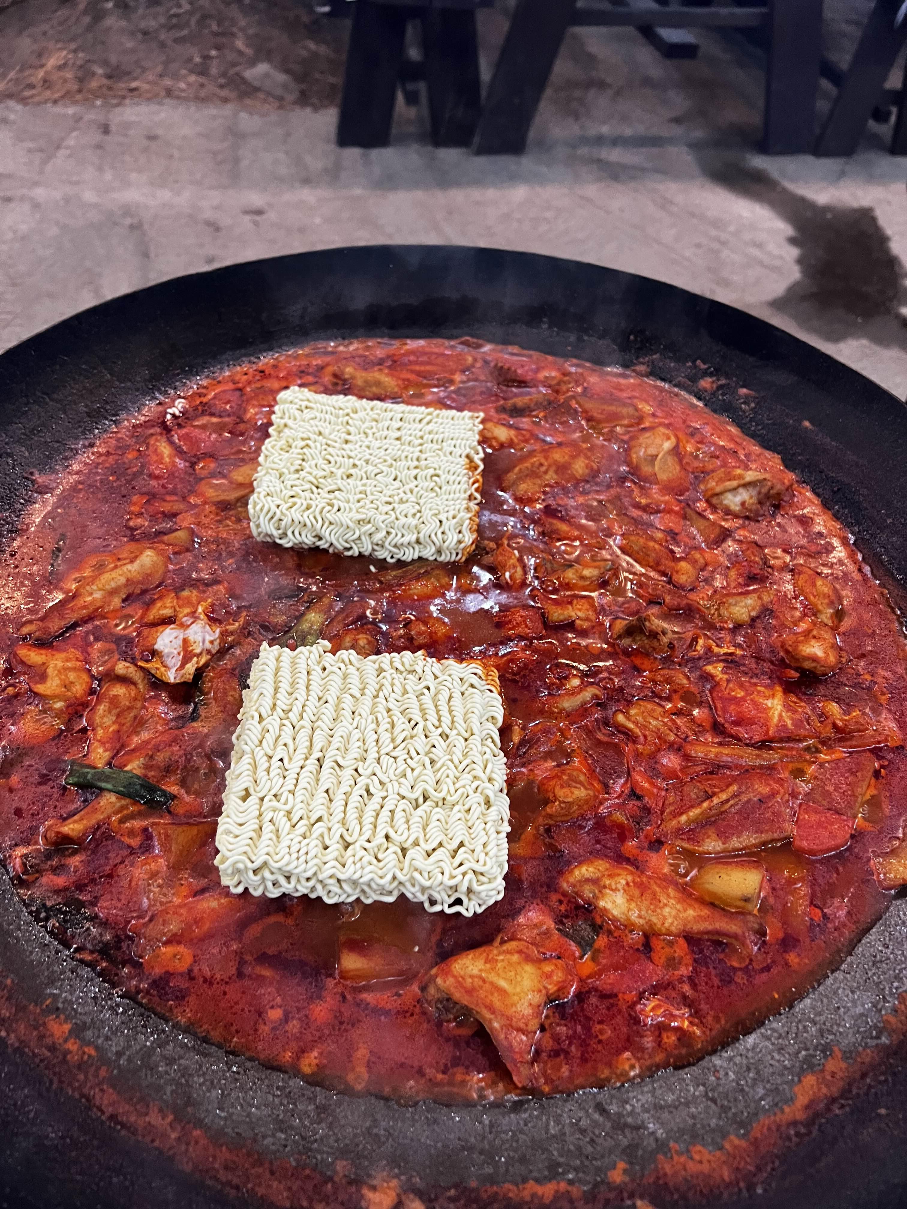 저녁은 솥뚜껑 닭볶음탕에 라면사리 넣고 볶음밥으로 마무리