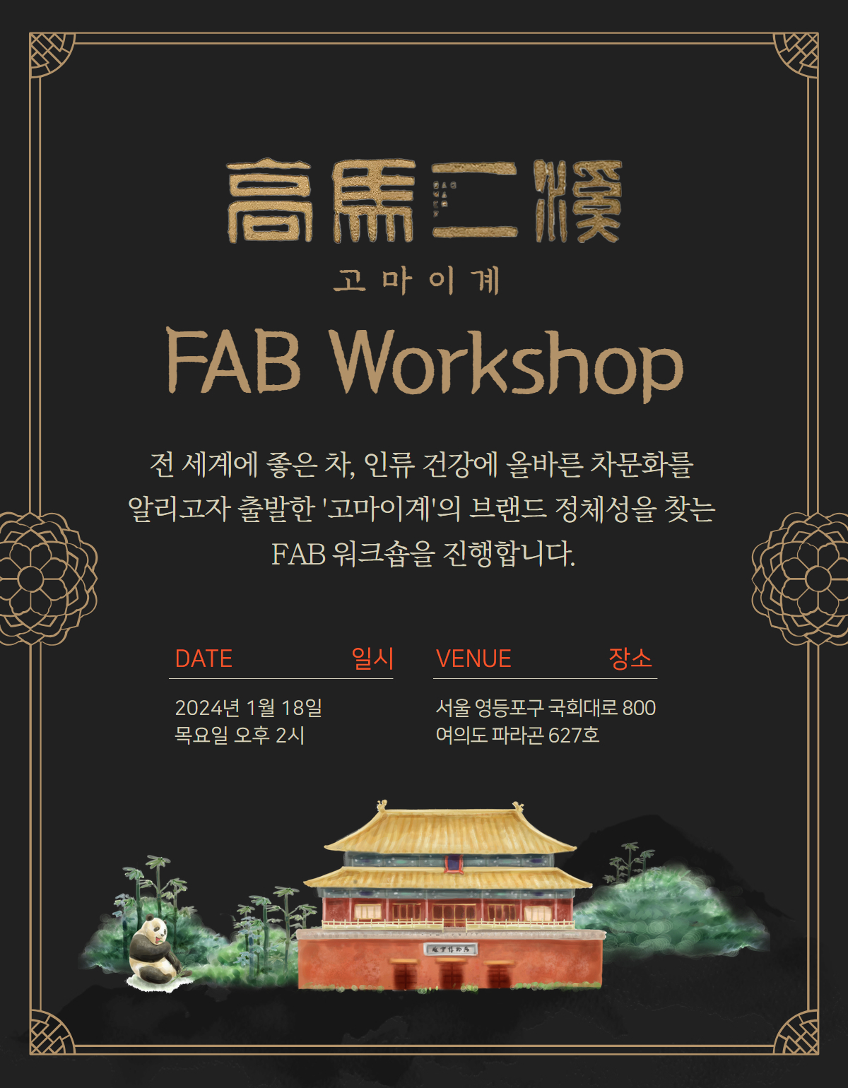 그 고마이계 흑차의 브랜드 정체성을 찾는 워크숍을 진행했어요.