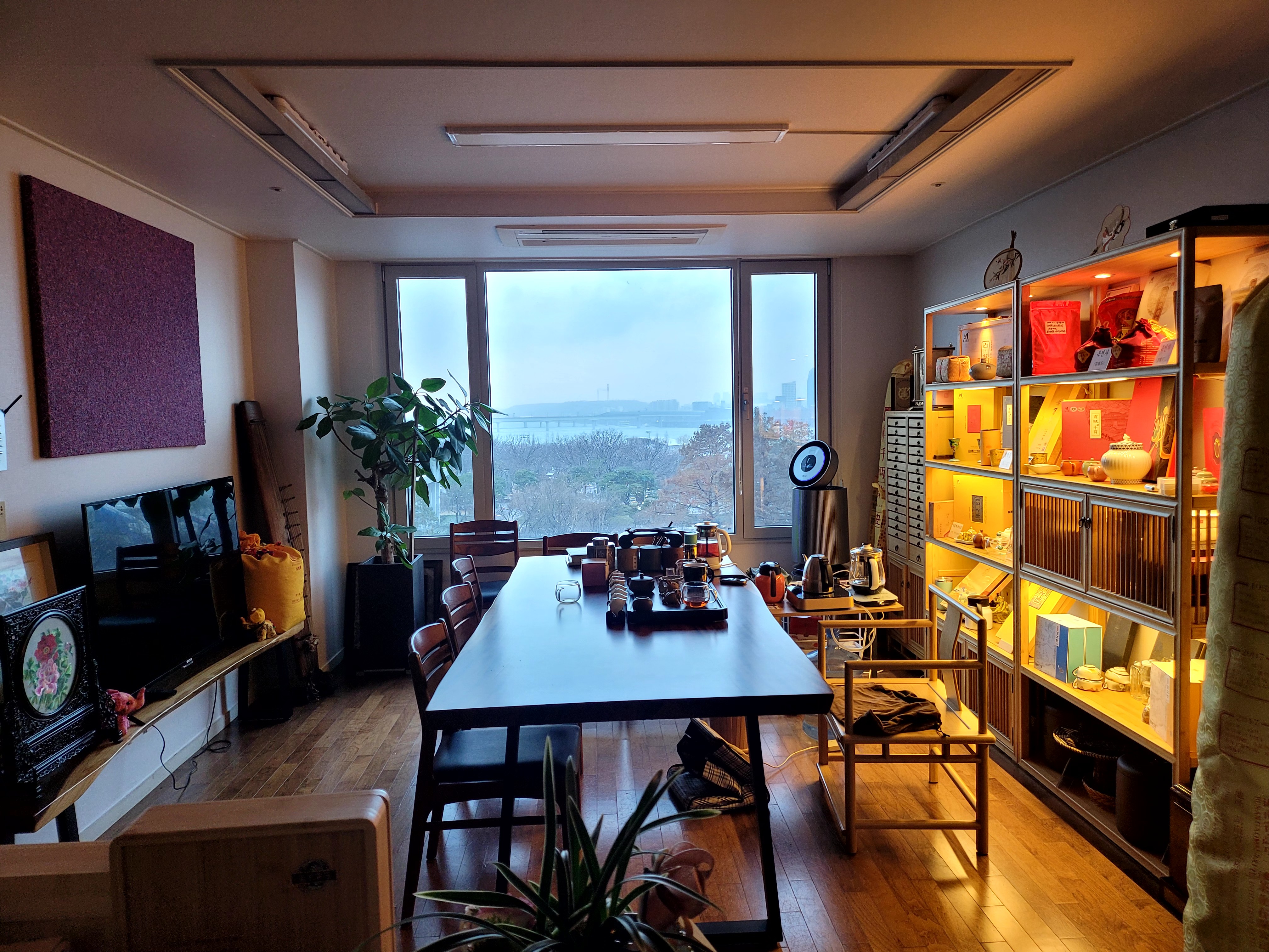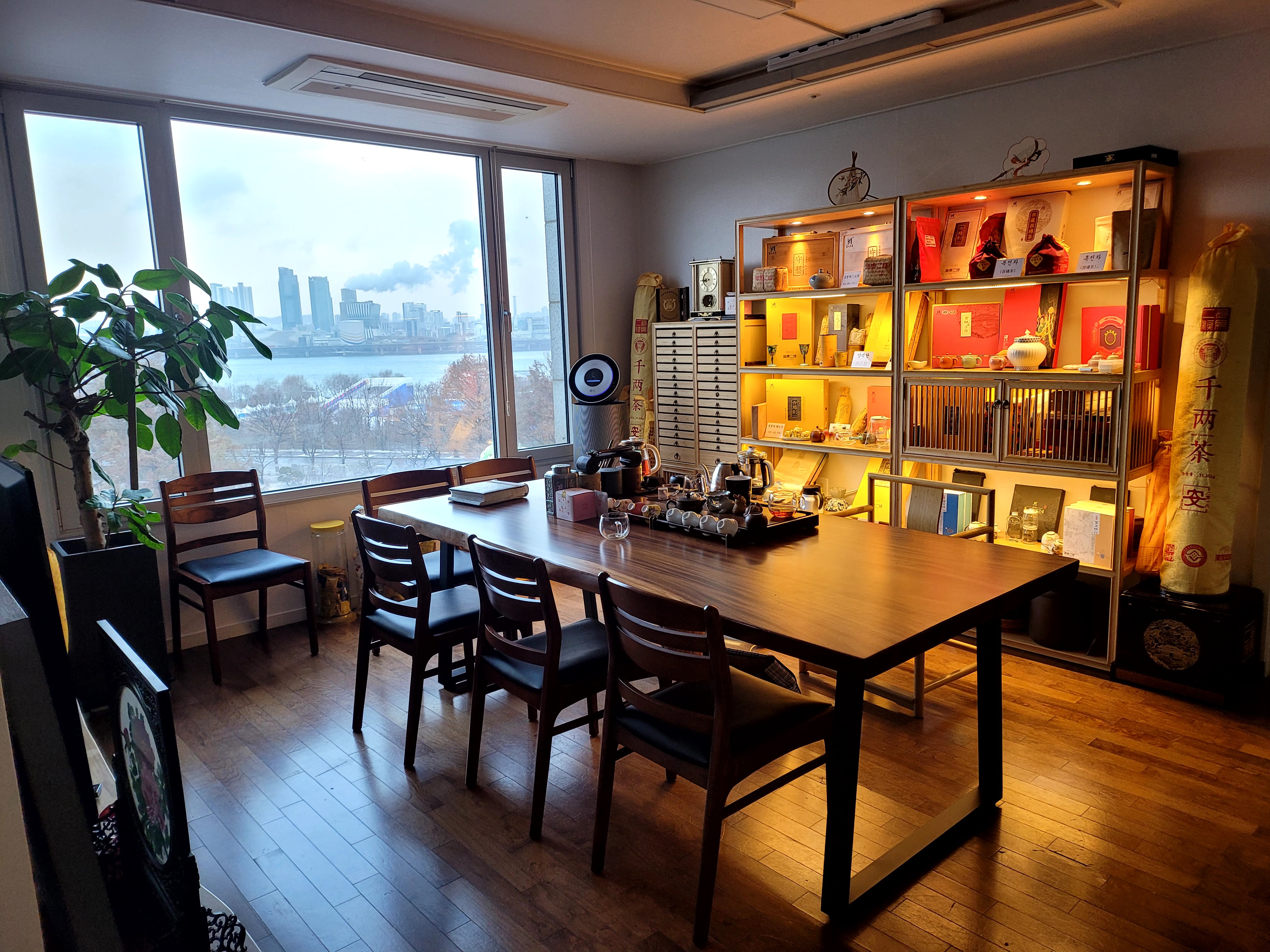 한강이 내려다보이는 멋진 풍경과 흑차의 다양한 브랜드가 전시된 사무실은 그 자체만으로도 아우라가 풍겨나오는 곳이랍니다.