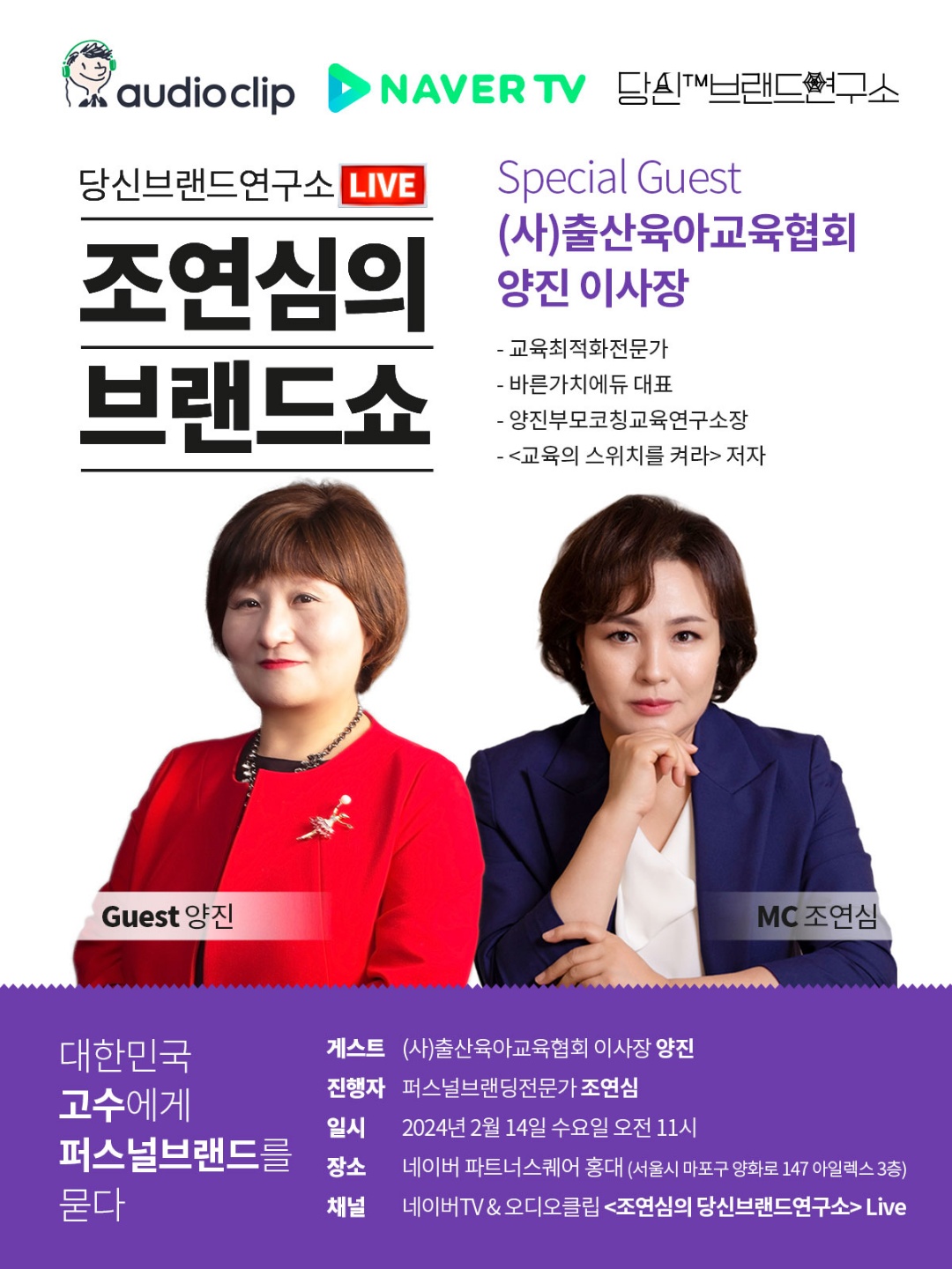 네이버TV X 오디오클립 #당신브랜드연구소 #조연심의브랜드쇼 #출산육아교육협회 이사장 #양진 편