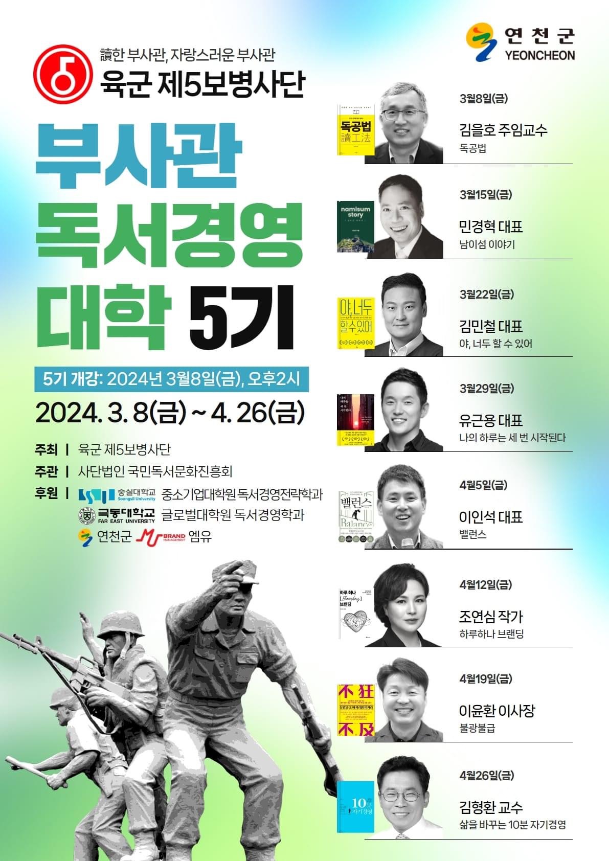 연천군 육군제5보병사단 <부사관 독서경영대학 > 5기 오픈 Coming soon by 국민독서문화진흥회
