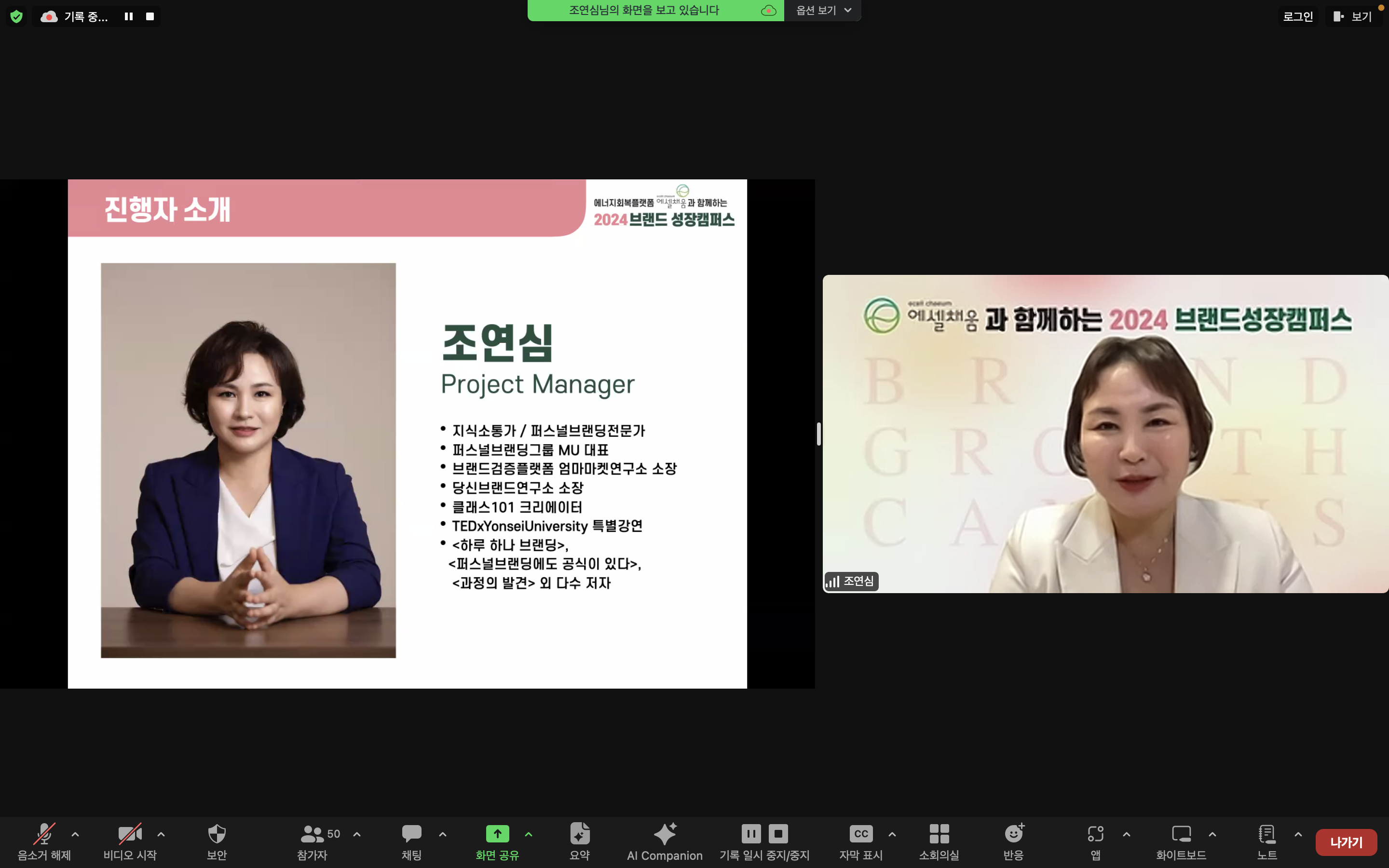 #퍼스널브랜딩그룹 #엠유 #조연심 #하루하나브랜딩 #2024브랜드성장캠퍼스