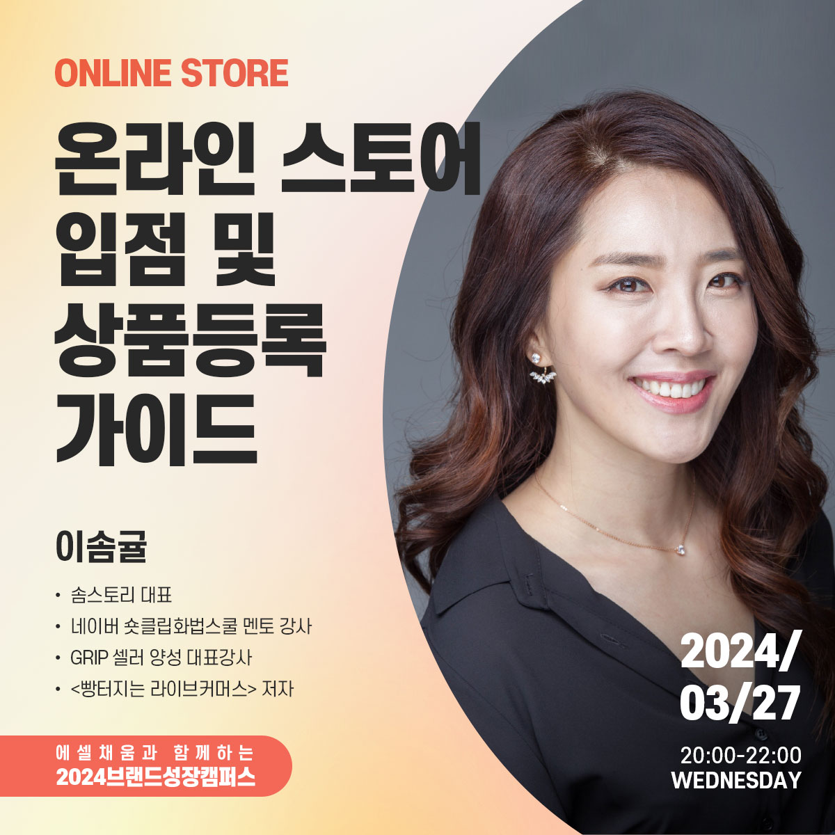 다음 주에는 이솜귤의 온라인스토어 입점 및 상품등록가이드를 배워보겠습니다.