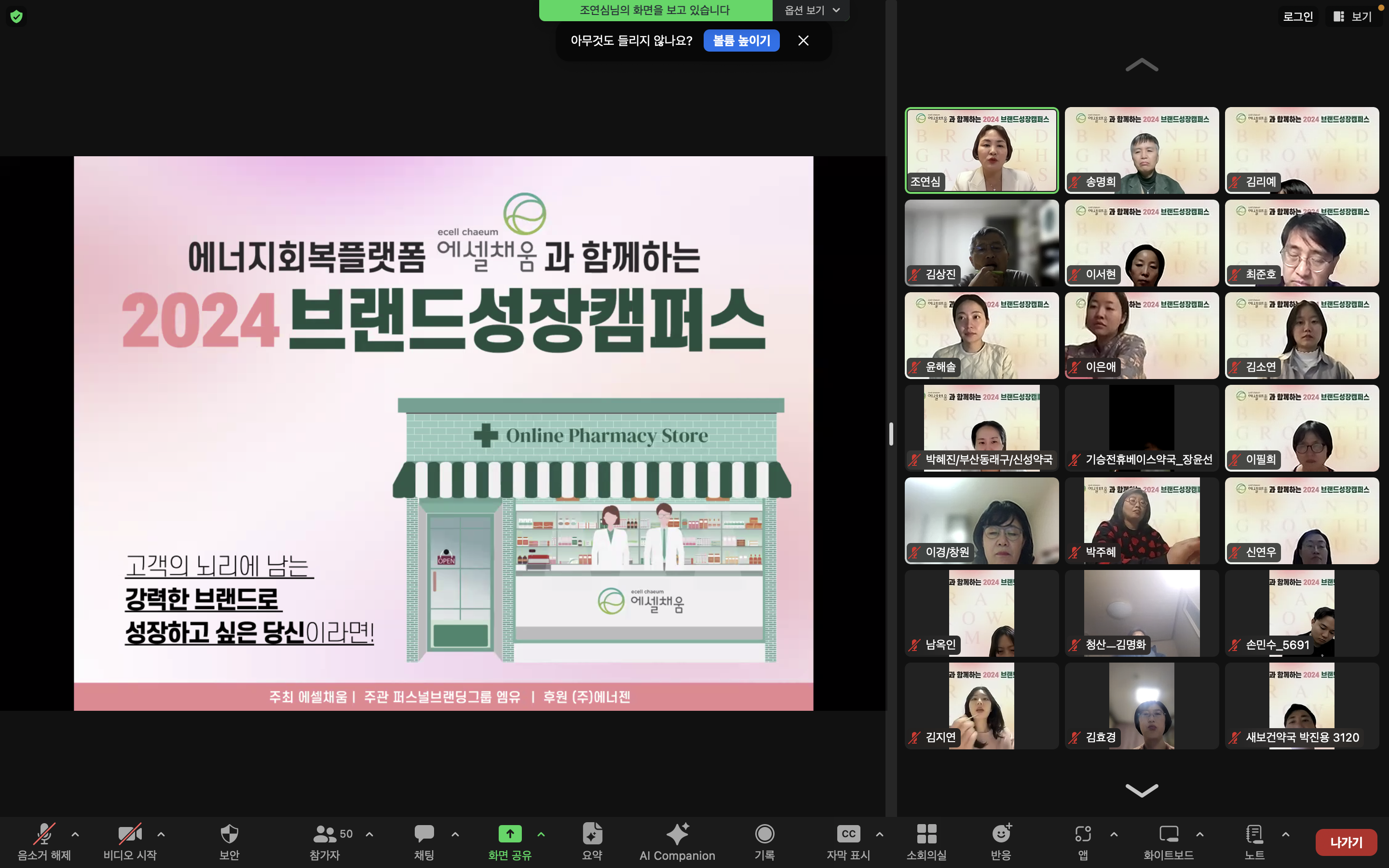 현직 약사, 한의사, 에셀채움 취급점장 대상으로 진행된 이번 브랜드성장캠퍼스는 변하는 시대에 경쟁력있는 내가 될 수 있는 다양한 방법들을 배우고 나누는 시간이 될 거라 확신합니다.