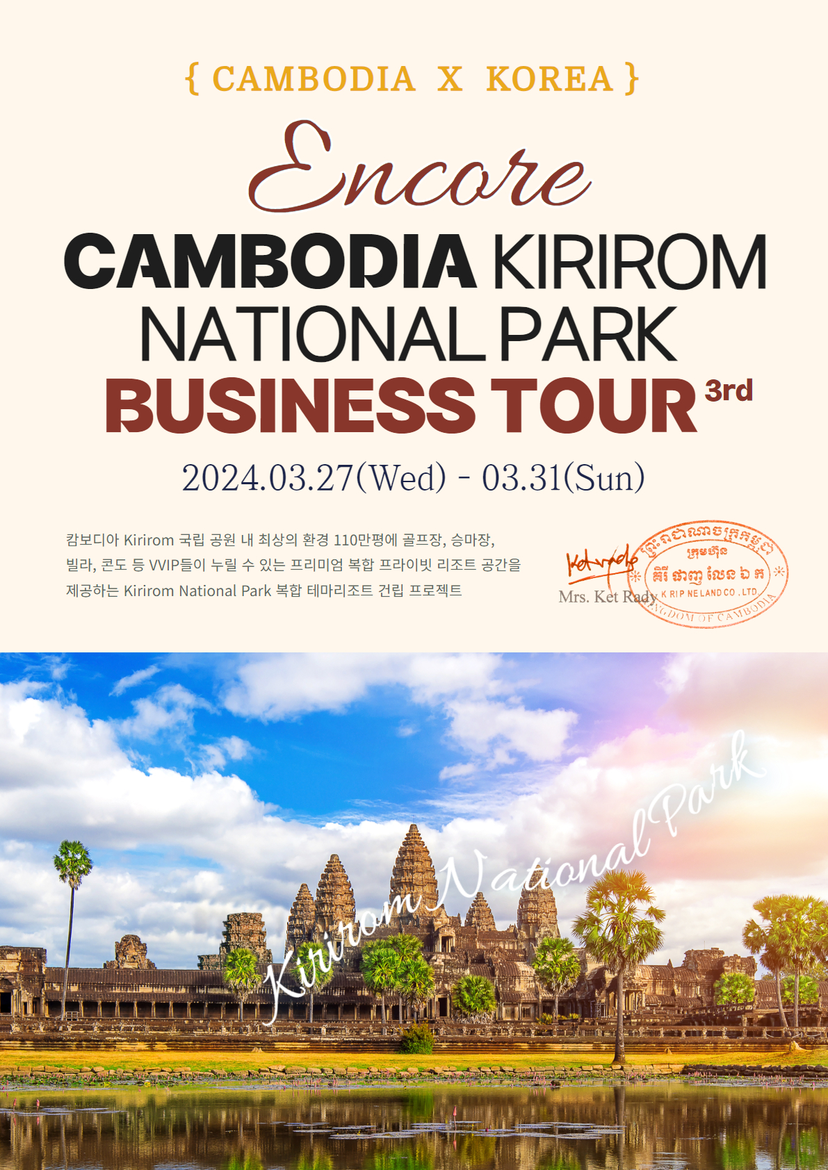 캄보디아 행부띠 장관님과의 끼리롬 국립공원 개발계획이 조금씩 윤곽을 드러내고 있네요. 이번에는 캄보디아 기업과 한국 기업간의 공식 업무협약을 하러 가는 거에요.