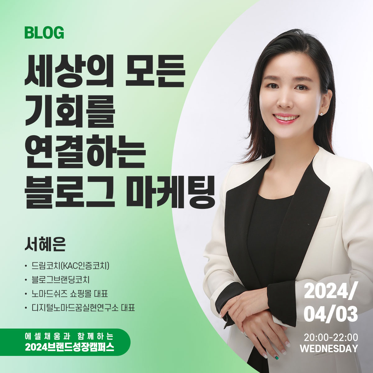 [2024 브랜드성장캠퍼스] 3주차 특강 미션 안내 블로그 - 서혜은 대표 2024년 4월 3일 수요일 저녁 20:00-2...