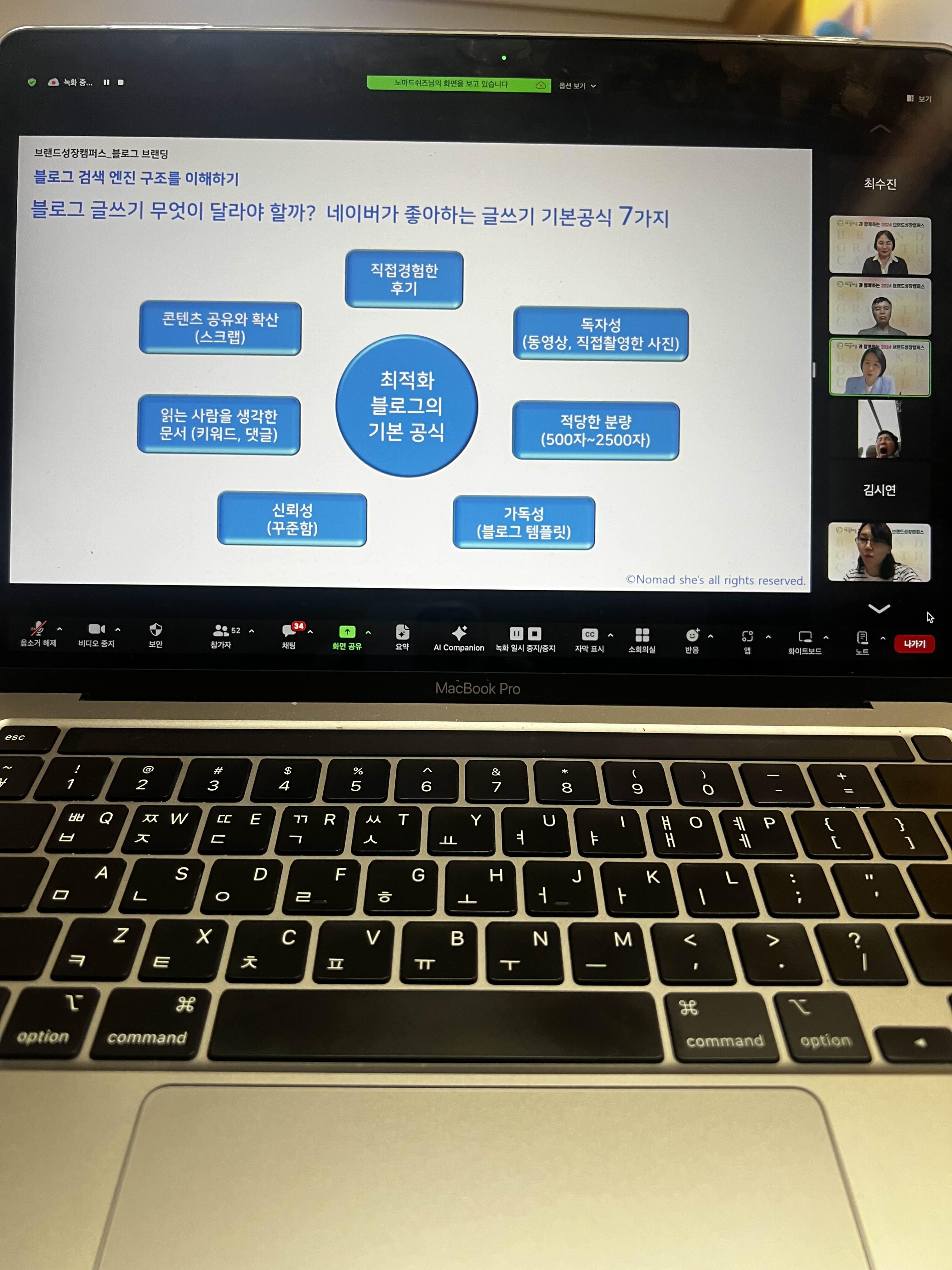 네이버 알고리즘이 좋아하는 블로그 글쓰기 방법과 노하우를 꼼꼼하게 알려준 시간이었습니다.