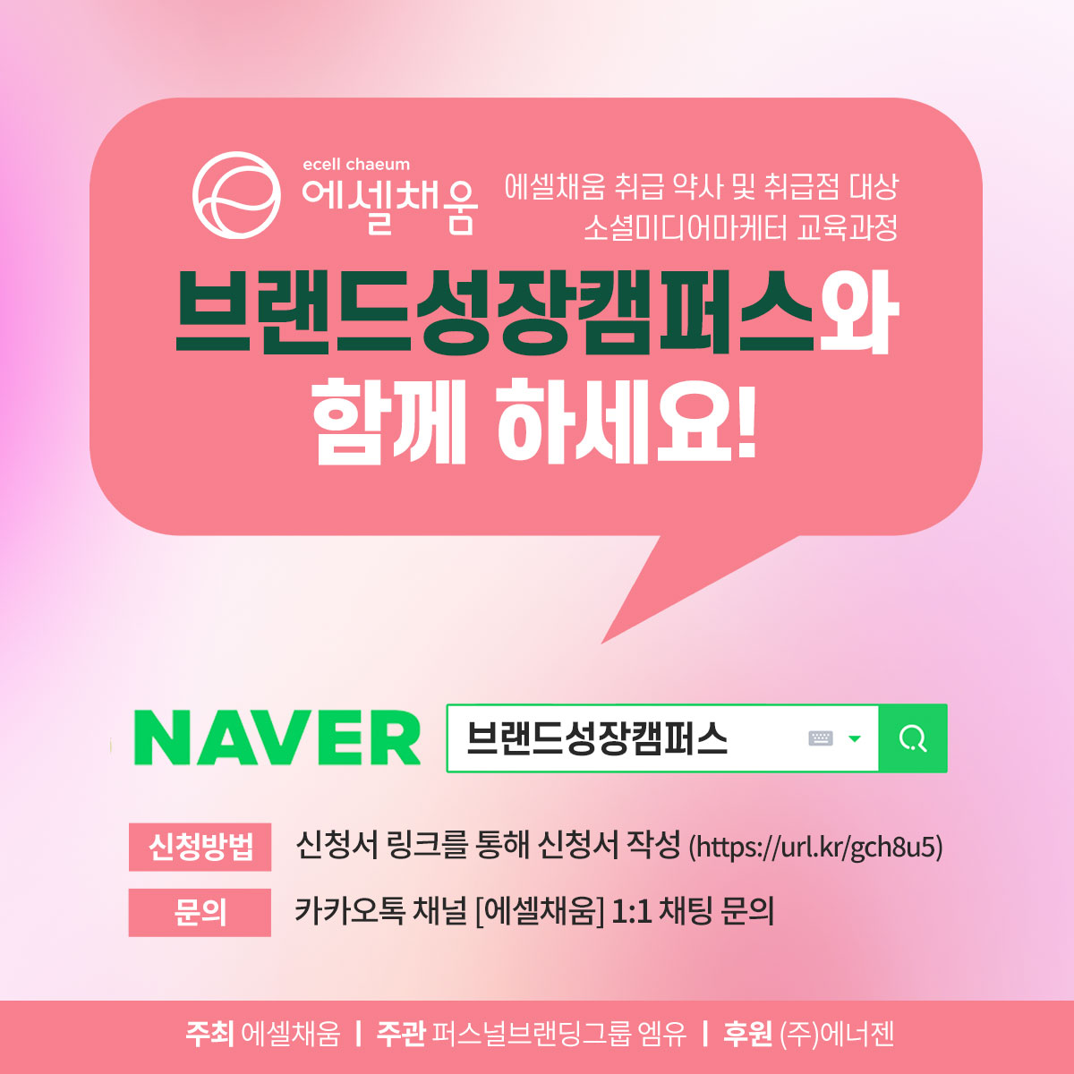 #에셀채움 #브랜드성장캠퍼스 #에셀채움브랜드성장캠퍼스 #약사대상 #에너지회복플랫폼 #에너지회복 #세포를춤추게하라 #온라인약국 #소셜미디어마케터교육과정 #2024브랜드성장캠퍼스 #송약사 #송명희약사 #조연심 #이솜귤 #리치파카 #서혜은 #정소영 #온라인마케팅 #브랜드특강 #인스타그램특강 #블로그특강 #숏폼특강
