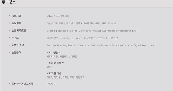 <한국디자인학회> 논문투고 / 생성 AI기반 맞춤형 퍼스널 서비스를 위한 브랜딩 프로세스 설계 by SMIT 미디어비즈니스학과 조연심
