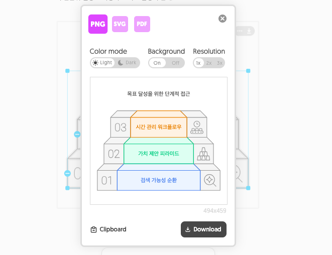 넵킨 AI에 이미지가 필요한 텍스트를 붙여넣기하면 다양한 인포그래픽을 추천해줍니다. 그 중 가장 맘에 드는 것을 선택하고 저장하면 끝!!