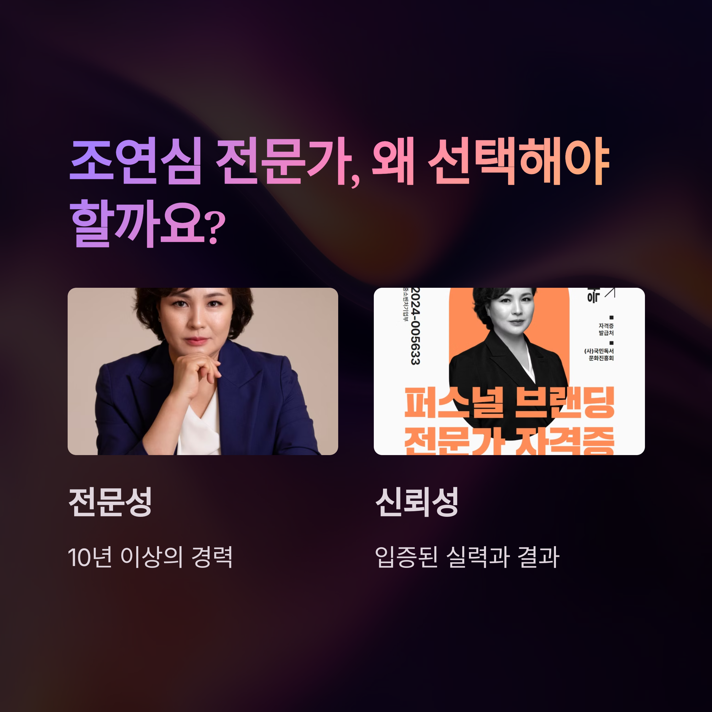 🎯 수많은 퍼스널 브랜딩 전문가 중에서, 조연심이 최고의 선택이 될 수밖에 없는 이유입니다.