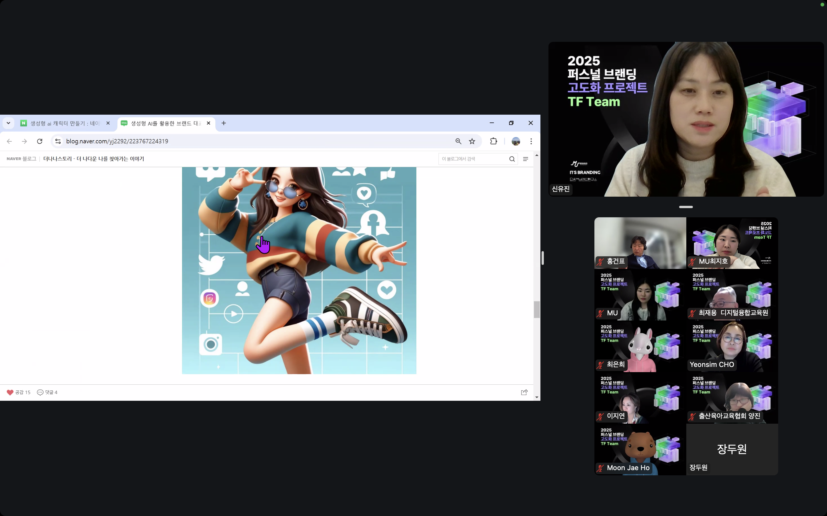 특히 조연심의 하루하나브랜딩 책에 나오는 100개의 소재를 챗GPT를 활용해 시나리오로 만들고 목소리를 더빙하고, 영상 생성 및 편집하는 과정을 통해 100개의 브랜딩 영상을 제작하겠다는 계획을 발표해 박수를 받기도 했다.