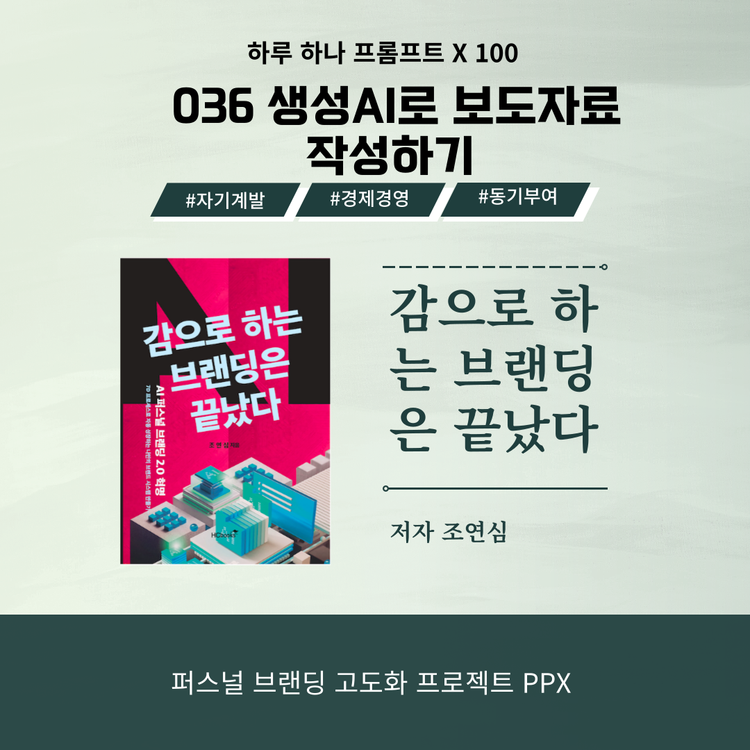 하루 하나 프롬프트 036 생성AI로 보도자료 작성하기 I AI 퍼스널 브랜딩 2.0 혁명: 감으로 하는 브랜딩은 끝났다 (조연심)
