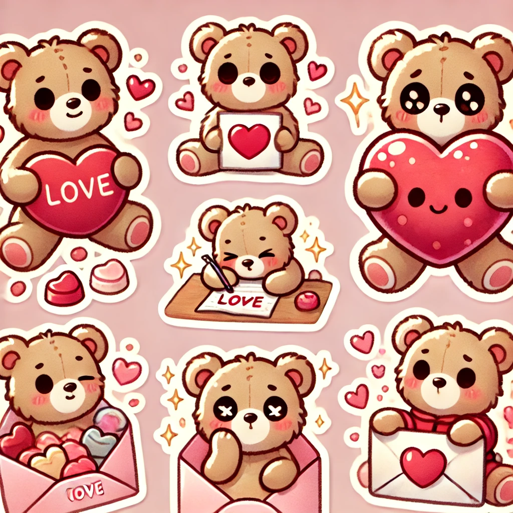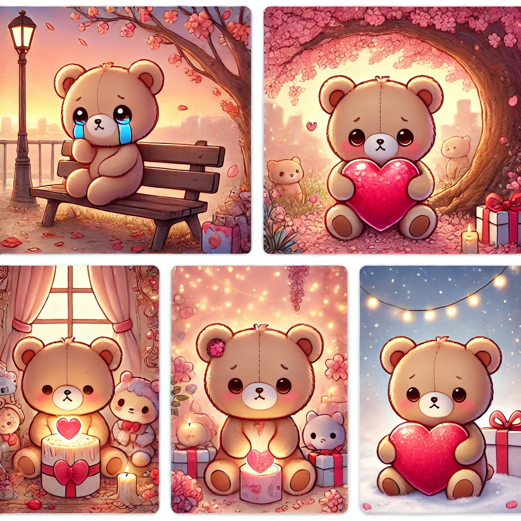 [울 테디 / 수줍 테디 / 하트 테디 / 선물 테디 / 포옹 테디] 감성 배경 일러스트 5종