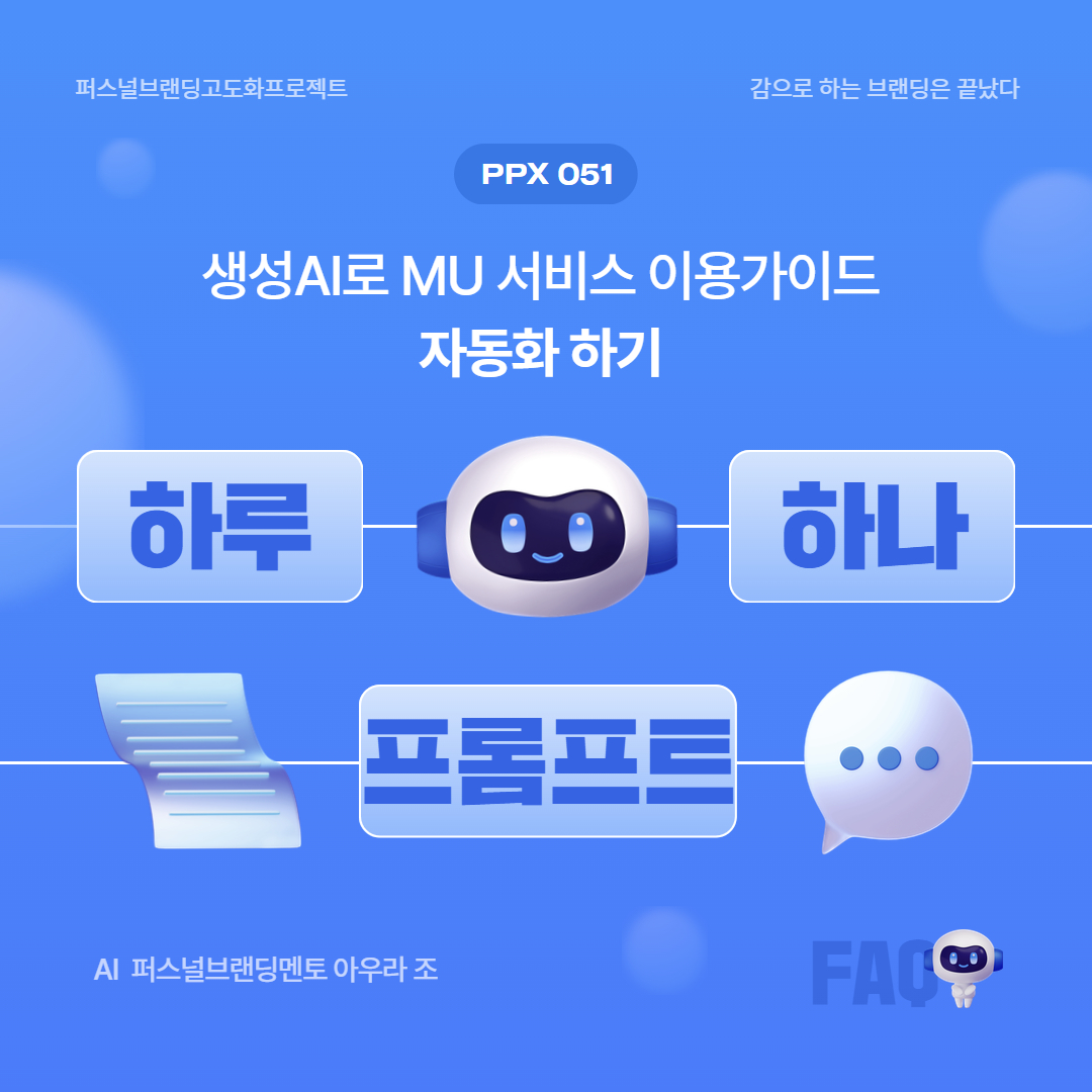 #생성형AI #AI활용법 #MU사 #디지털평판관리 #서비스이용가이드 #고객온보딩 #AI자동화 #프롬프트엔지니어링 #PPX100 #ProjectPersonaX #감으로하는브랜딩은끝났다 #조연심 #힘찬북스