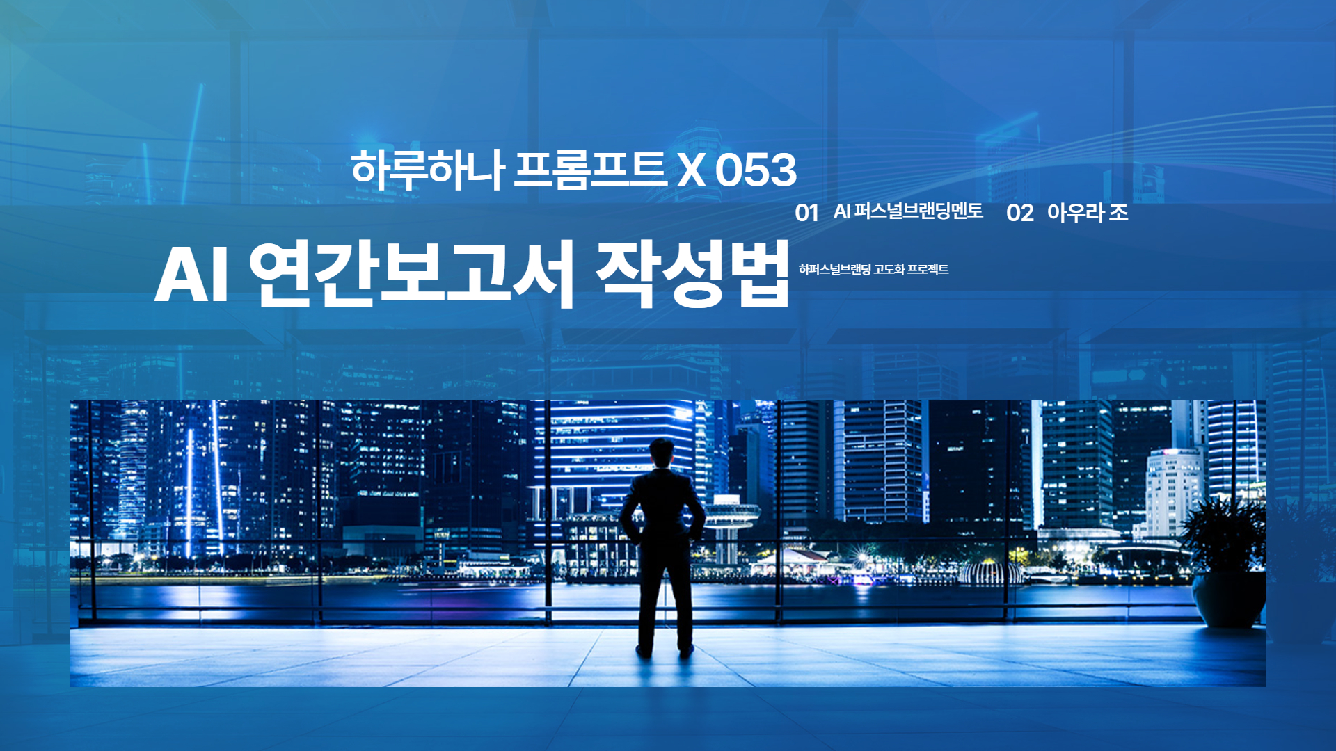 안녕하세요! 퍼스널 브랜딩 일인자, 그리고 AI 퍼스널 브랜딩 전문가로 기억될 아우라 조입니다. 오늘도 여러분의 창작을 한 단계 업그레이드할 AI 활용법을 소개해 드릴게요! 제가 진행하는 퍼스널 브랜딩 고도화 프로젝트, 그중에서도 하루 하나 프롬프트를 발행하는 PPX100(Project Prompt X 100) 알고 계신가요? 이 프로젝트를 통해 AI 활용도를 높이고, 창작과 브랜드 구축에 필요한 강력한 프롬프트를 제공합니다. 오늘은 생성형 AI를 활용한 연간 보고서 작성법을 다뤄볼게요!
