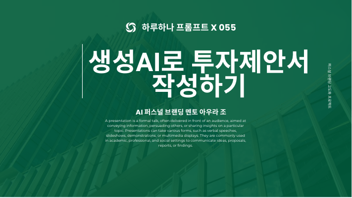 하루 하나 프롬프트 X 055 생성형 AI로 투자 제안서, 정말 가능할까? — AI가 만드는 스마트한 투자 전략 by 아우라 조