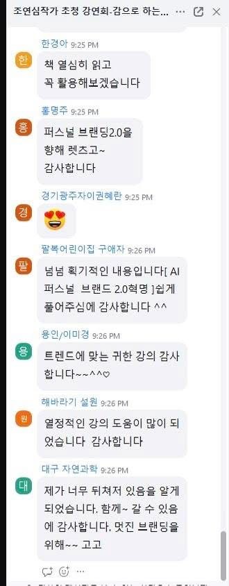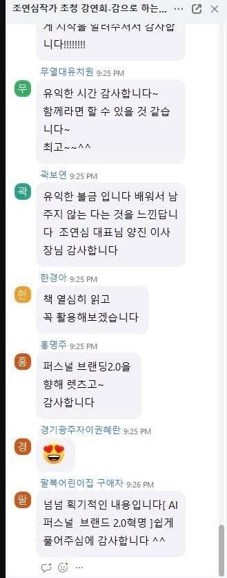 앞으로도 조연심 선생님의 가르침을 따라, AI 퍼스널 브랜딩 2.0 시대를 향해 나아가겠습니다. 감사합니다!