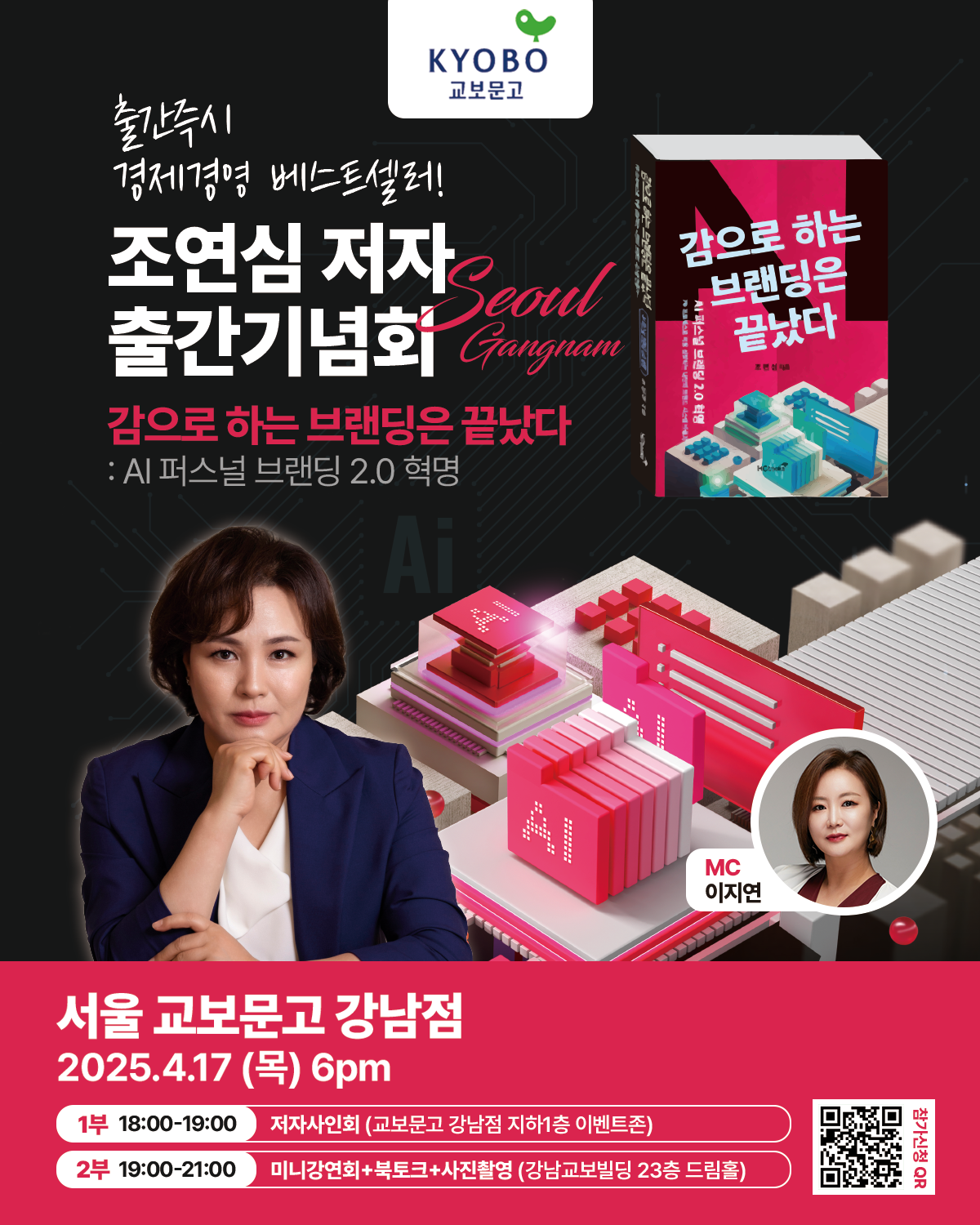 4월 17일 저녁 6시 강남 교보문고에서 조연심의 [감으로 하는 브랜딩은 끝났다] 저자 사인회와 저자 강연회가 있을 예정입니다. 오프라인에서 조연심을 만날 수 있는 시간!!! 많이 보러 오세요...