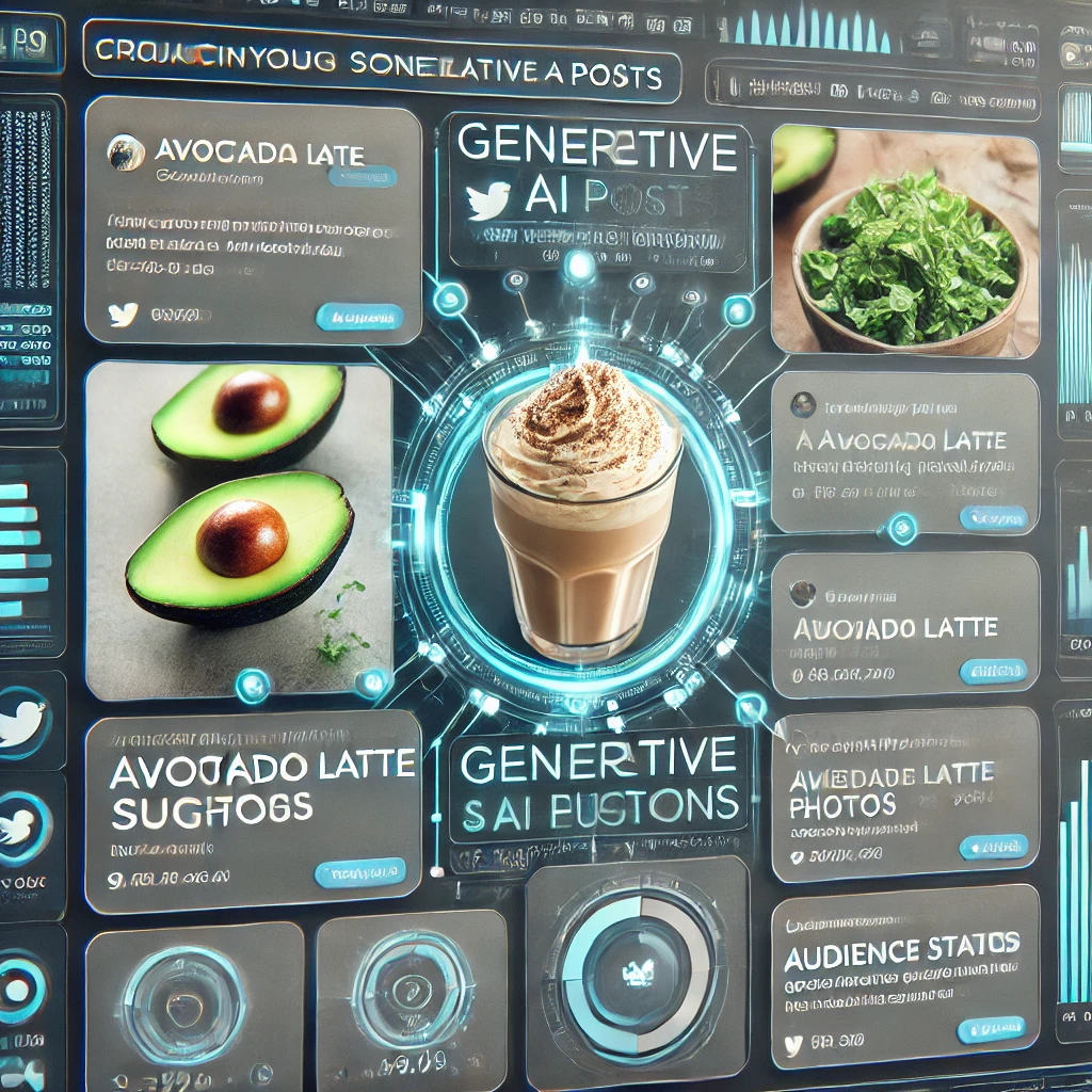 주요 키워드: 생성형 AI, 트위터 게시물, 소셜미디어 마케팅, 타겟 오디언스, 인게이지먼트, 해시태그 전략, 아보카도 라떼