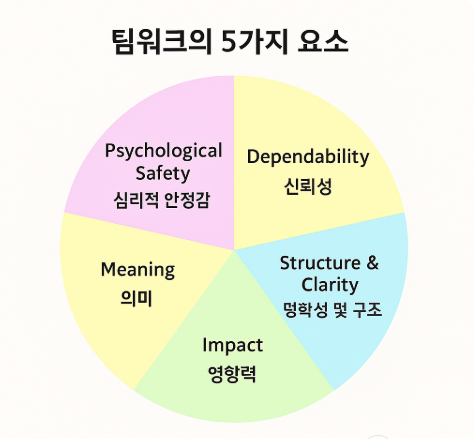 | 심리적 안정감 | 팀원 앞에서 실수나 약점을 공유해도 불편하지 않다 |
