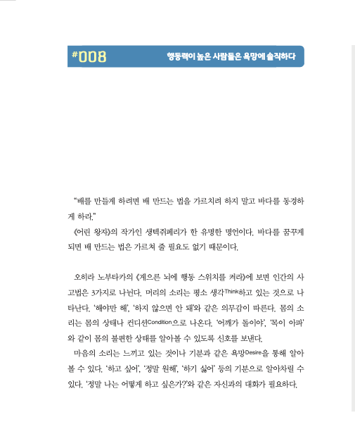 | Awareness (욕망 인식) | 나의 진짜 욕망, 하고 싶은 일을 솔직히 인식하고 받아들인다. |