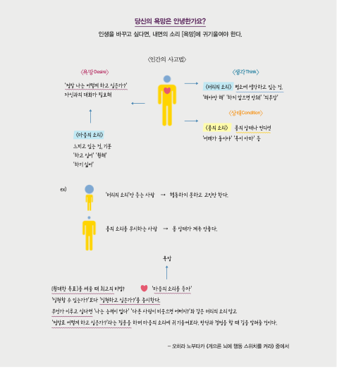 | Awareness (욕망 인식) | 나의 진짜 욕망, 하고 싶은 일을 솔직히 인식하고 받아들인다. |