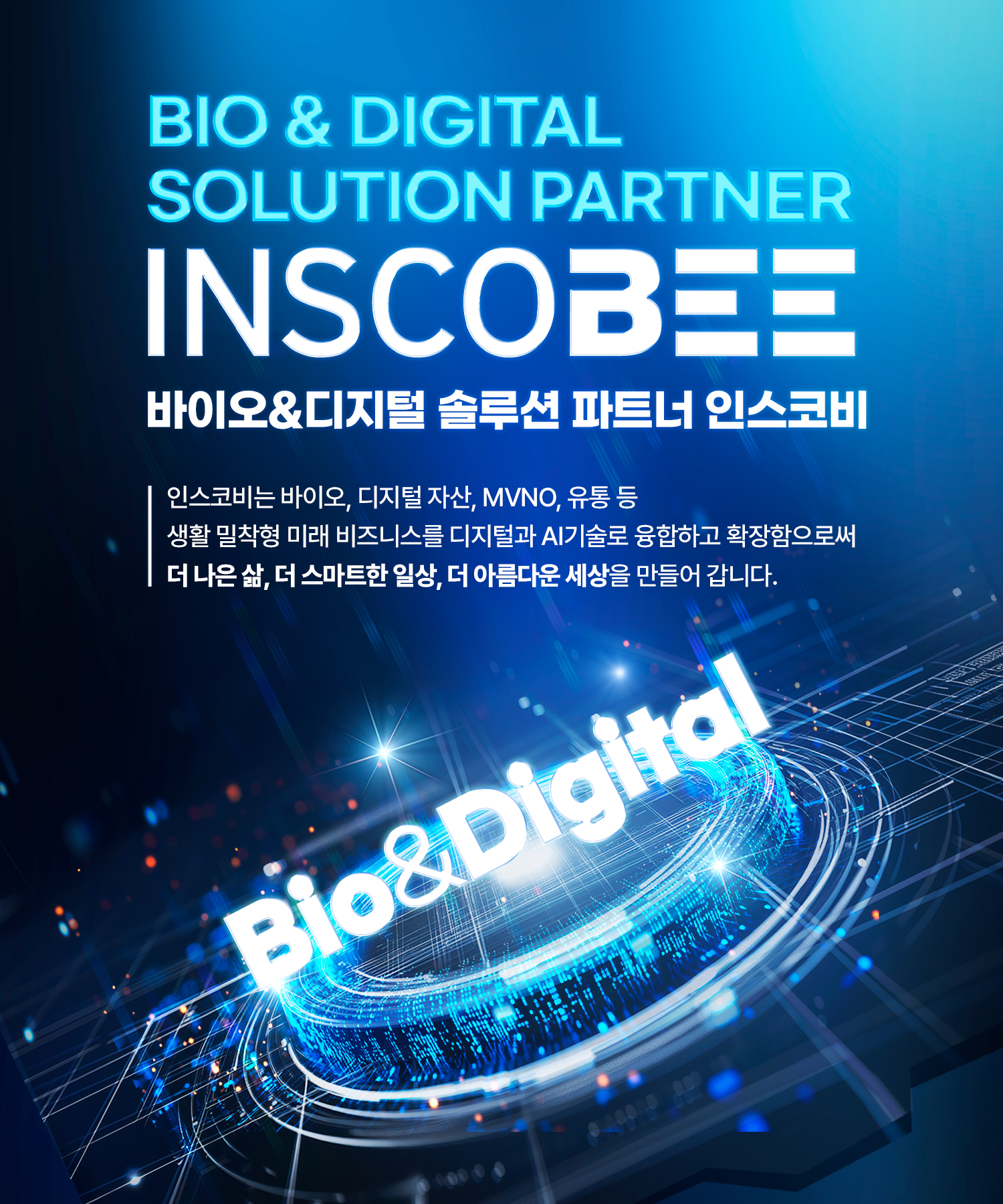 인스코비는 바이오, MVNO(알뜰폰), 유통, 디지털 자산 등 다양한 생활 밀착형 산업을 디지털과 AI 기술로 융합하여 더 나은 삶과 지속 가능한 미래를 만들어가는 솔루션 파트너입니다.