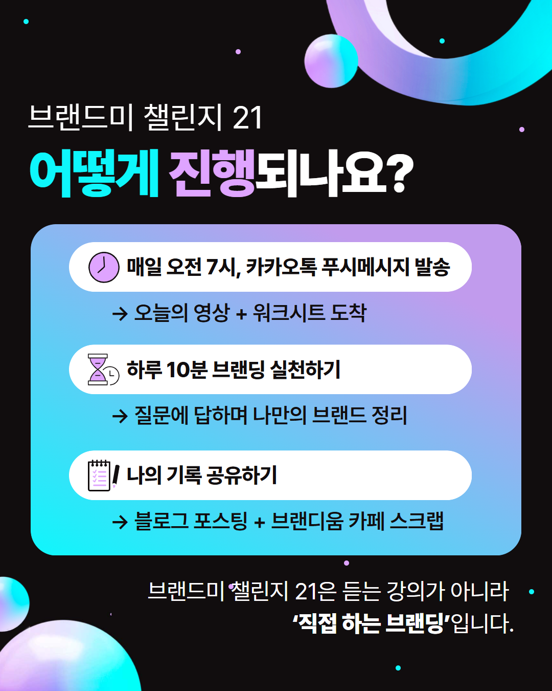 3️⃣ 매일 아침 도착하는 영상+워크시트로 브랜딩 실천