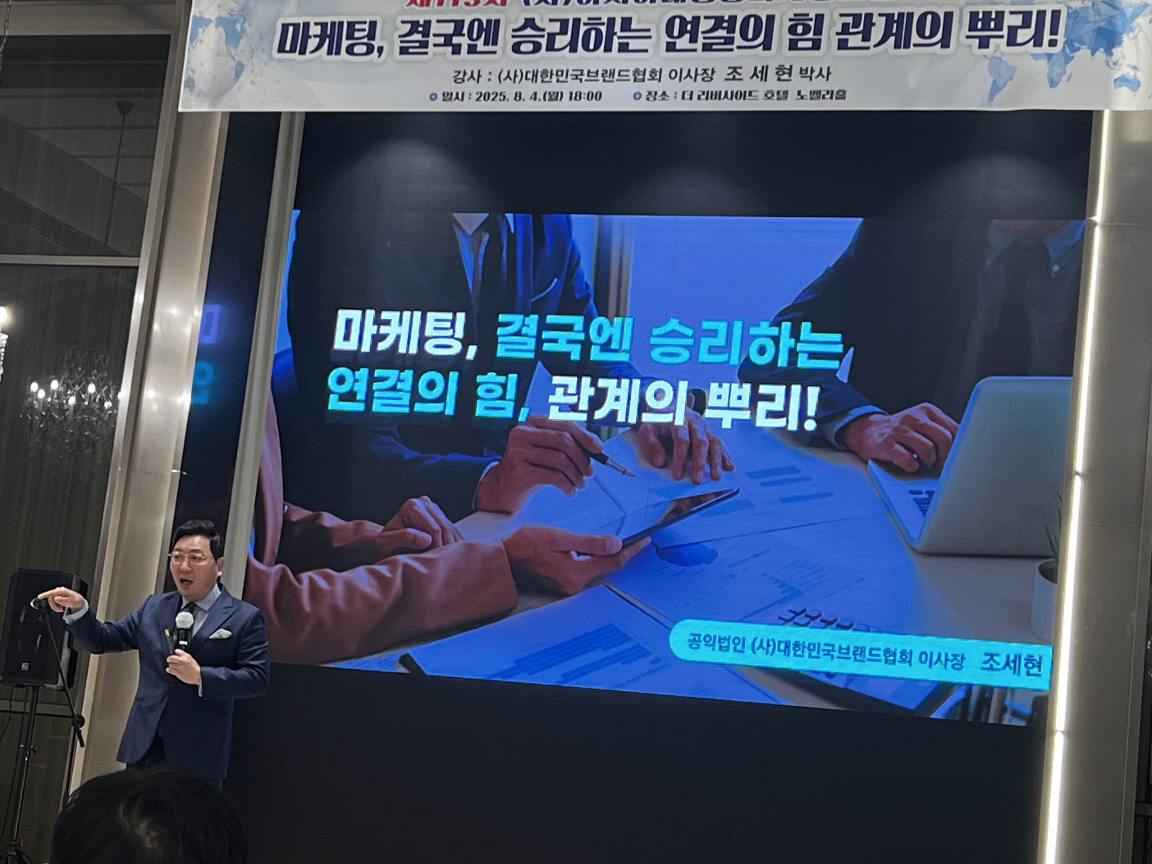 대한민국브랜드협회 조세현 이사장이 직접 전하는 강의「마케팅, 결국엔 승리하는 연결의 힘, 관계의 뿌리!」가 진행되었습니다.