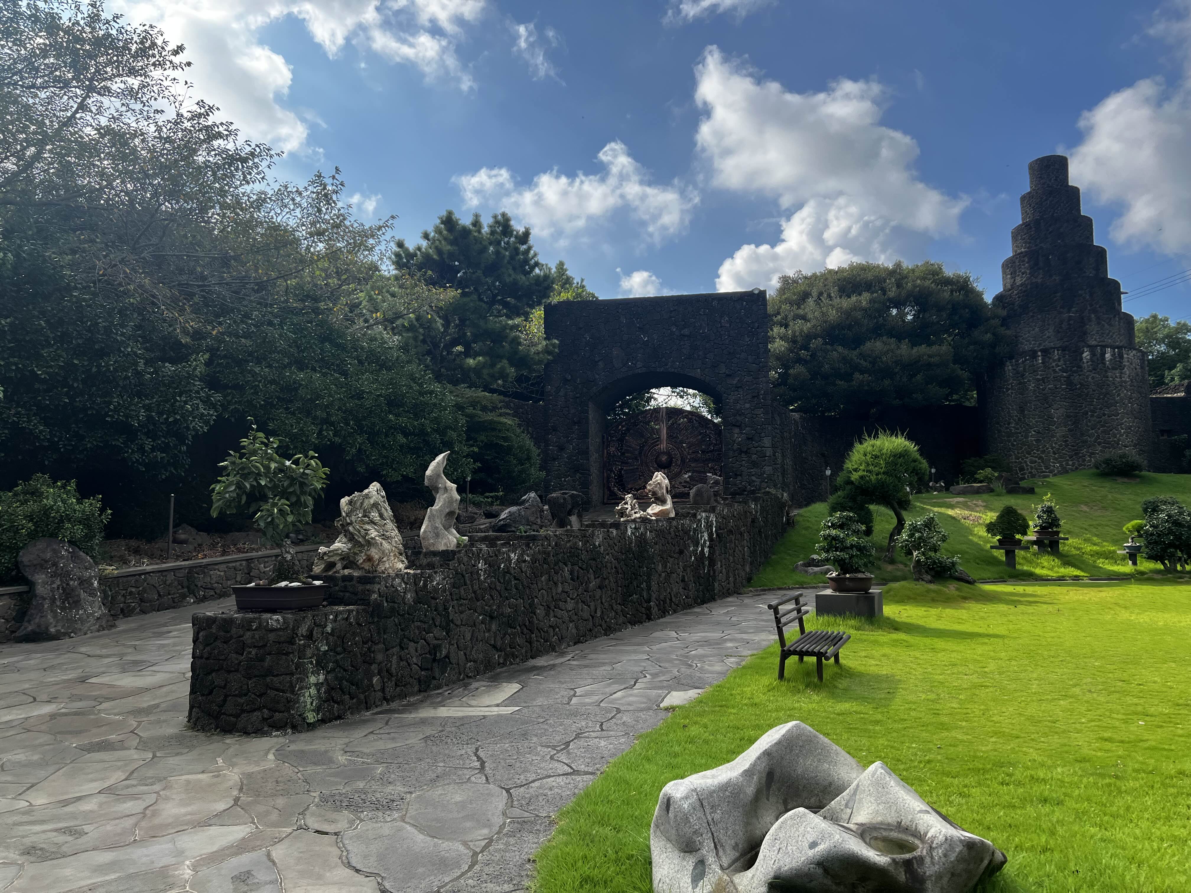 제주의 거친 현무암과 아름다운 분재가 조화를 이루며, “제주의 미학”을 가장 잘 보여줍니다.