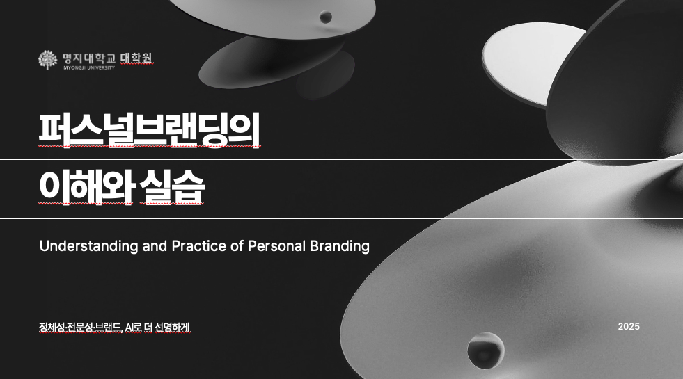 오늘 명지대학교 교육대학원 교육학과 독서코칭전공 석사과정에서 ‘퍼스널브랜딩의 이해와 실습’ 1주차 수업이 오리엔테이션과 함께 시작되었습니다.